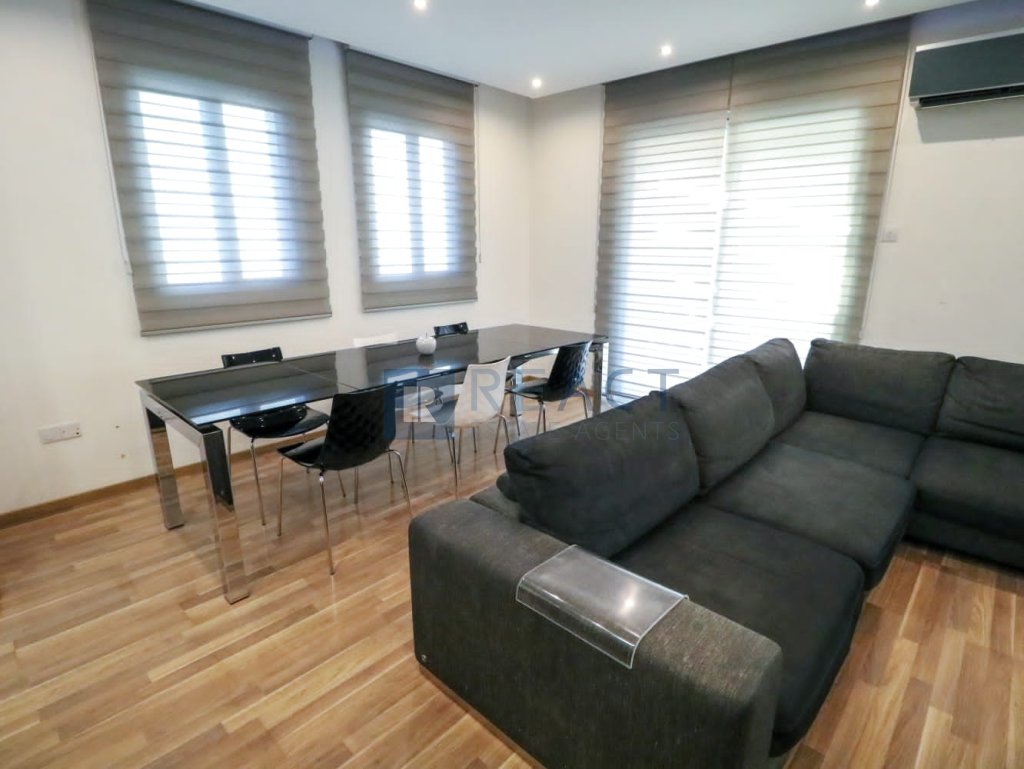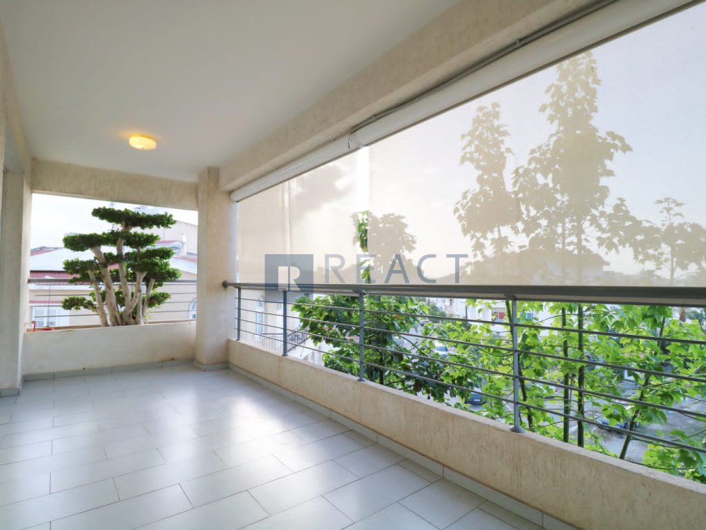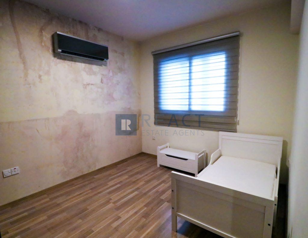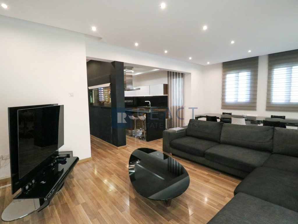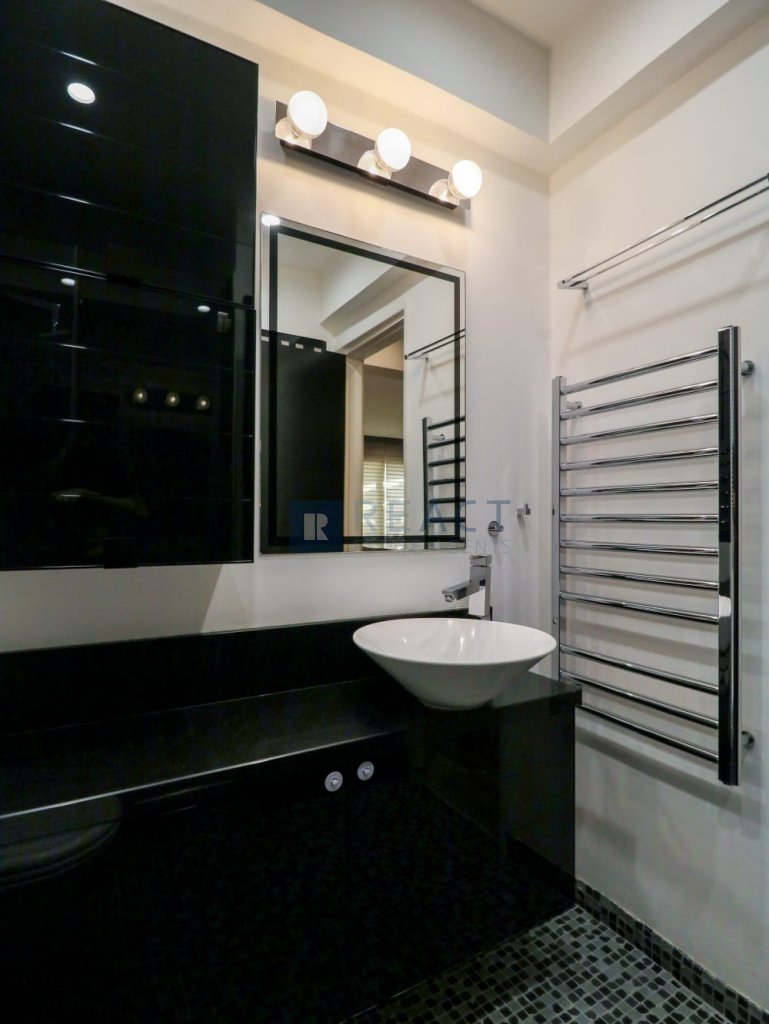 The apartment is located on the top floor of a 3-storey residential building and consists of 2 bedrooms and 2 bathrooms. The open plan kitchen features an integrated aquarium that divides the space and serves as a centerpiece. Bedrooms have exterior aluminum shutters for a blackout effect.