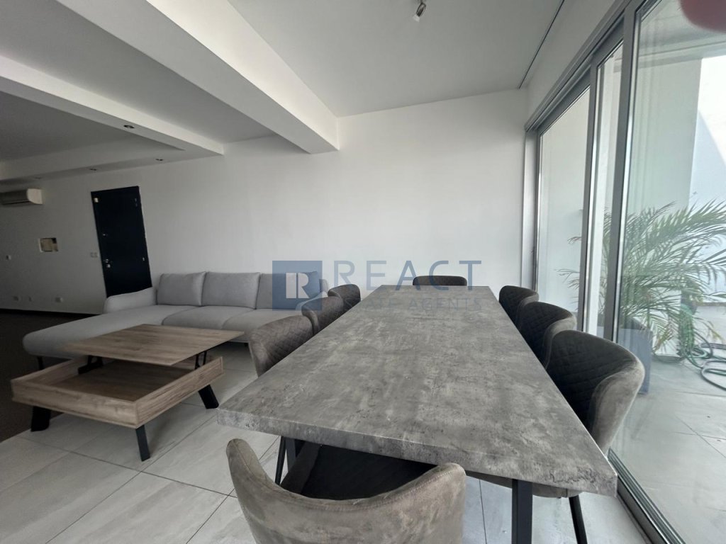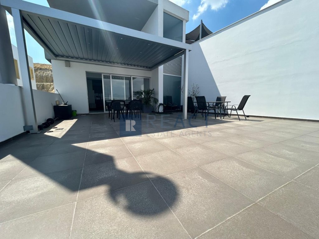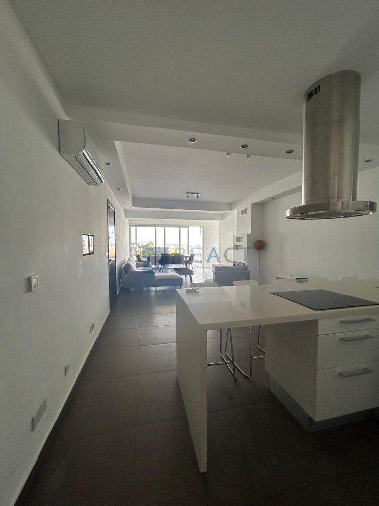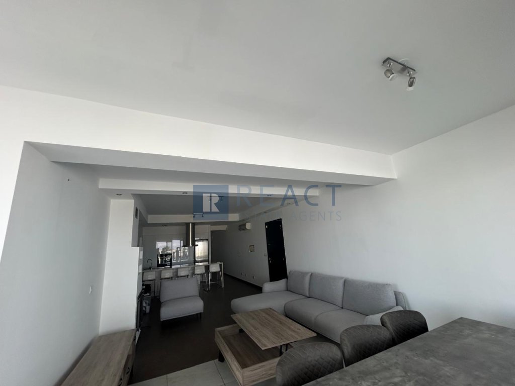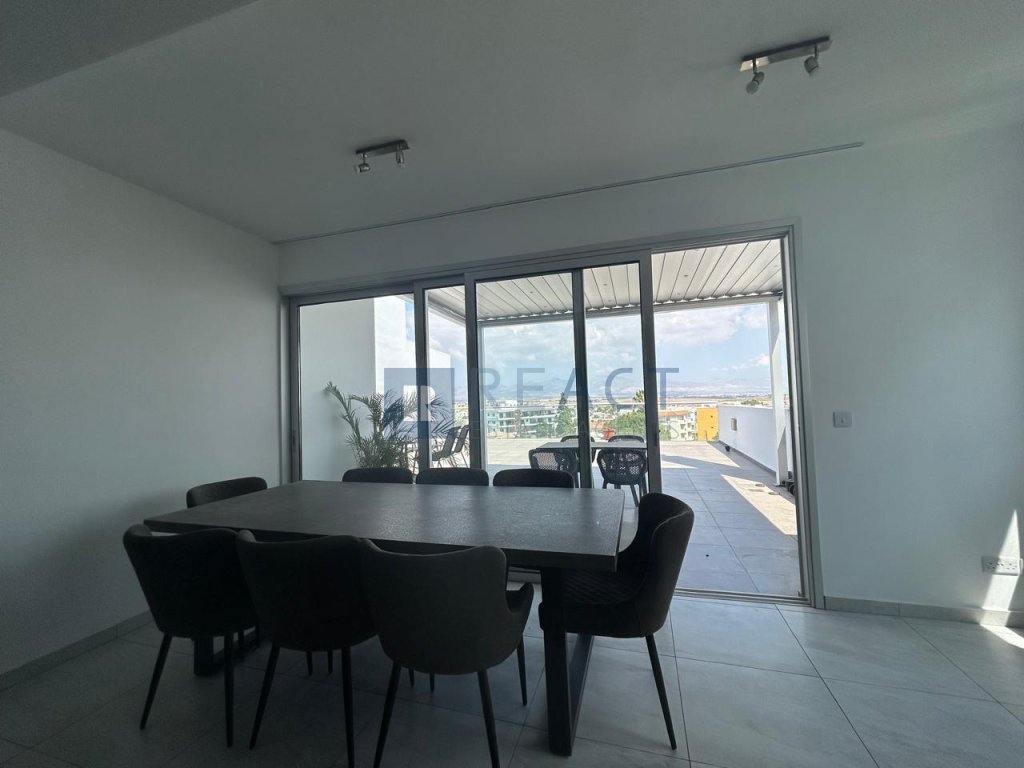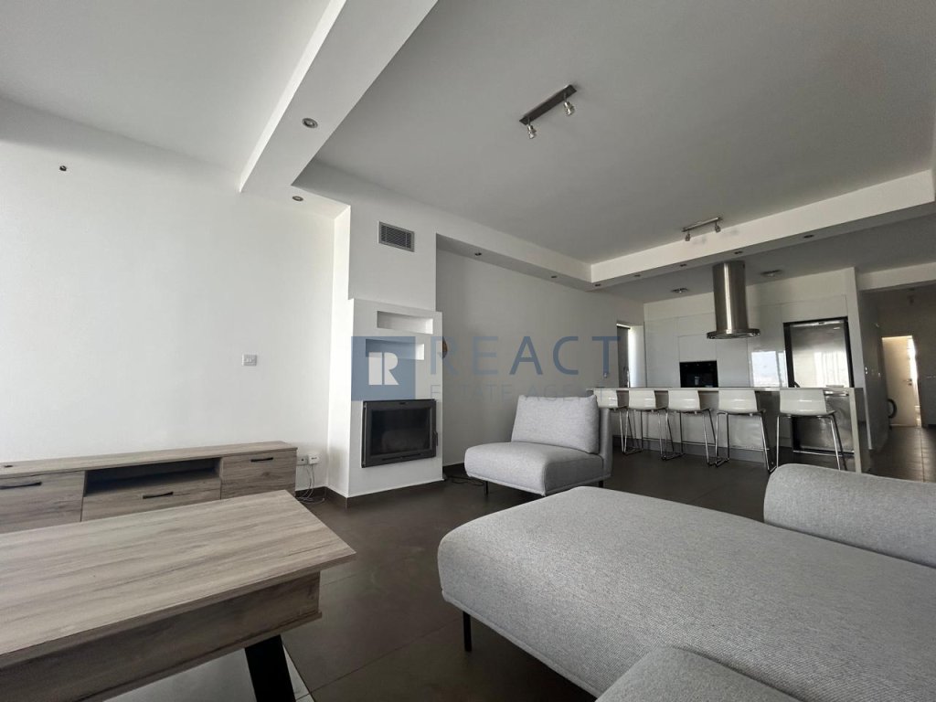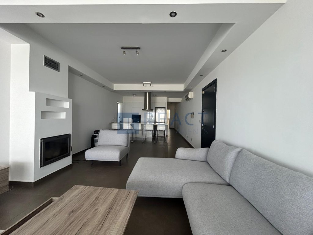 The apartment is located on the 2nd floor of a 3-storey residential building, with a total area of 110 sqm. It features two bedrooms and one bathroom. The 83 sqm semi-covered veranda offers an unobstructed view. The property is fully furnished, including a well-equipped open-plan kitchen and a cozy living room with a fireplace. Additional amenities include covered parking, air conditioning units, and central heating.