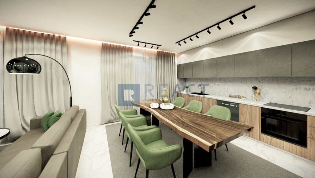 The apartment its located on the 1st floor of a 5 floor building with a total of 9 apartments of three bedrooms. Each floor consists of two apartments except the 5th floor. It has an internal area of 103sqm and 25sqm covered verandas and 9sqm uncovered verandas. Each apartment has 1 parking place and a storage room.