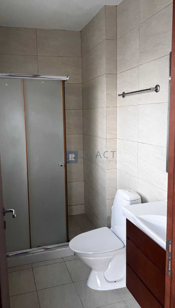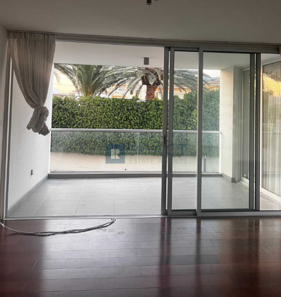 The apartment is located on the 1st floor of a 3-storey residential building. It has an internal area of 115sqm approximately and 2 covered verandas. The layout consists of 3 bedrooms(one en-suite) and a walking closet, 1 shared bathroom and guest WC. The dinning/sitting area has access to the spacious verandas leading to an open plan kitchen. Small pets are allowed. Additionally, it offers 2 covered parking, storage room, underfloor heating and AC's. Prime location next to a park, close to all amenities, services and easy access to the high way and city center.
