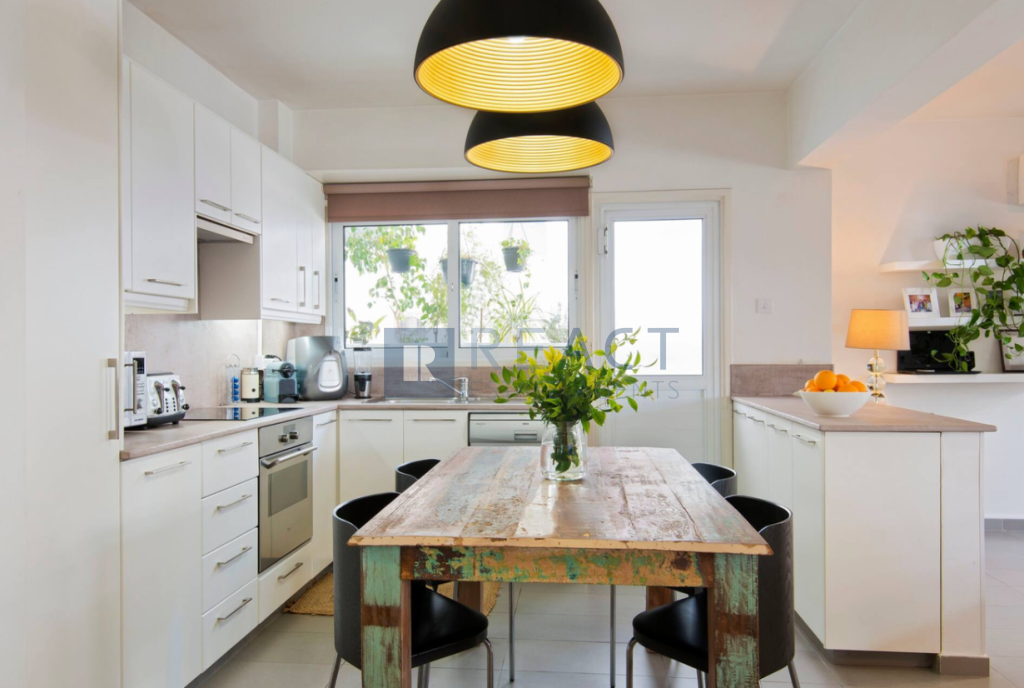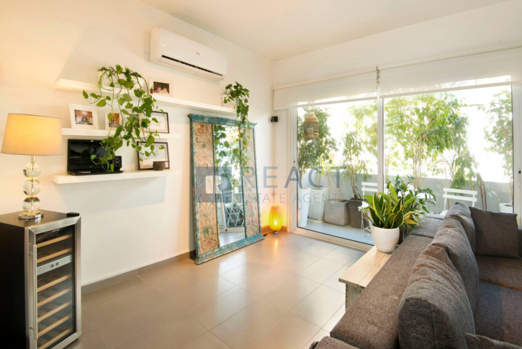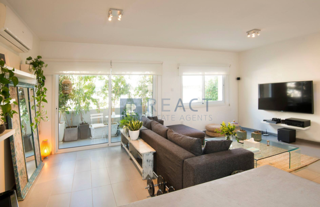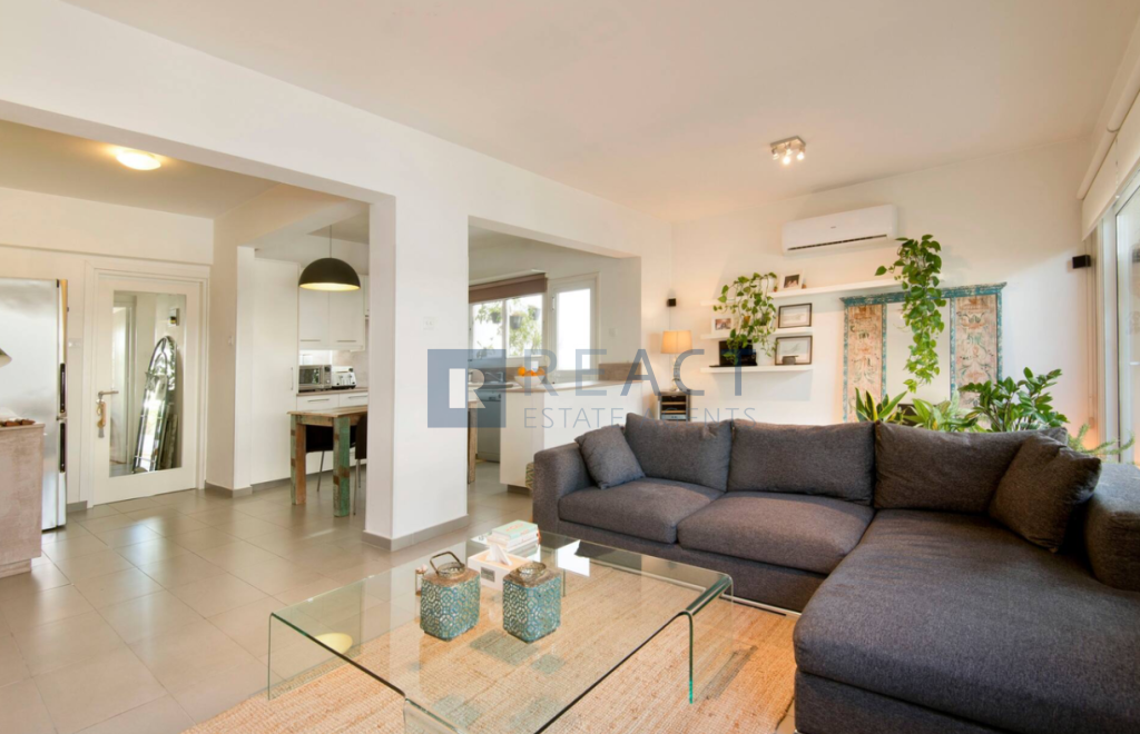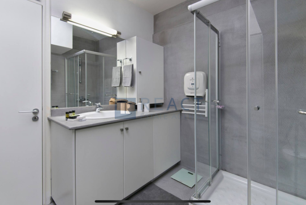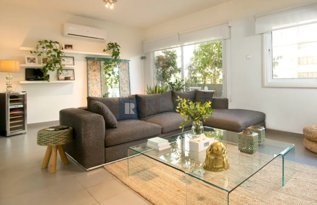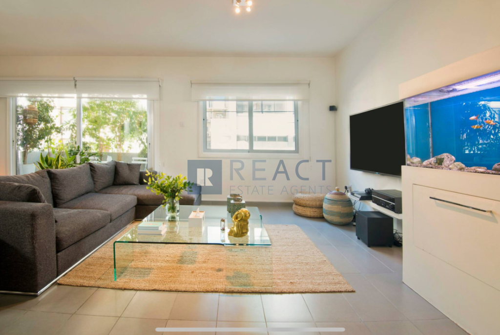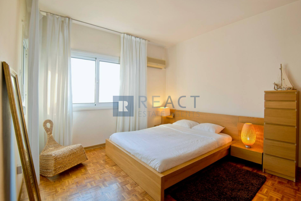 The apartment it's located on the 1st floor of a 5-storey residential building. It has an internal area of 110sqm and a covered veranda. It consists of 3 bedrooms and one bathroom. The apartment comes fully furnished and with all the electrical appliances.