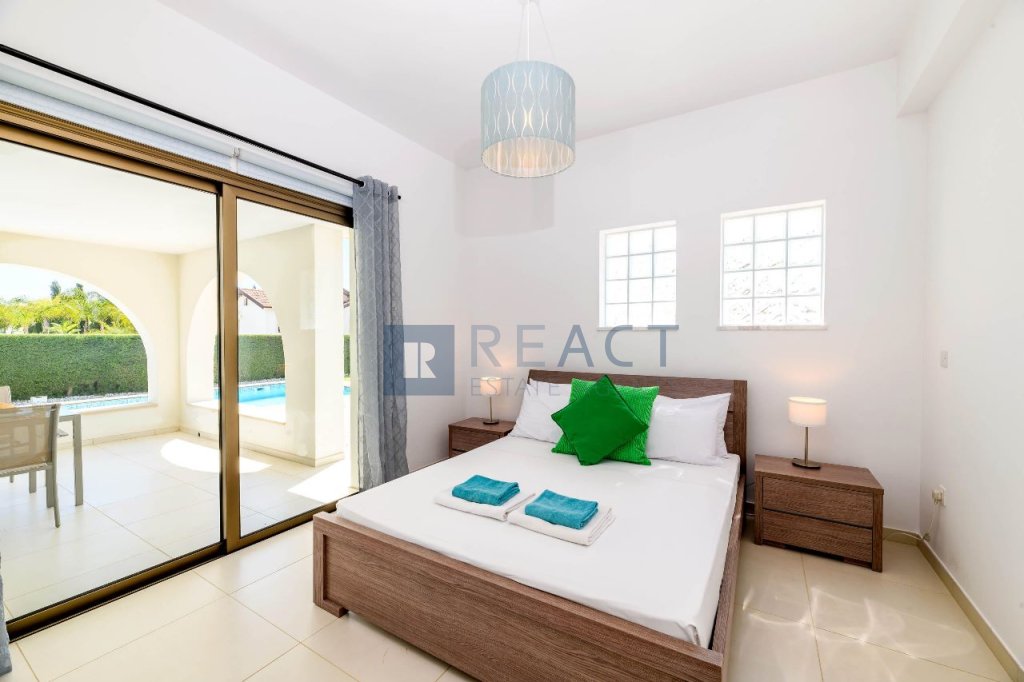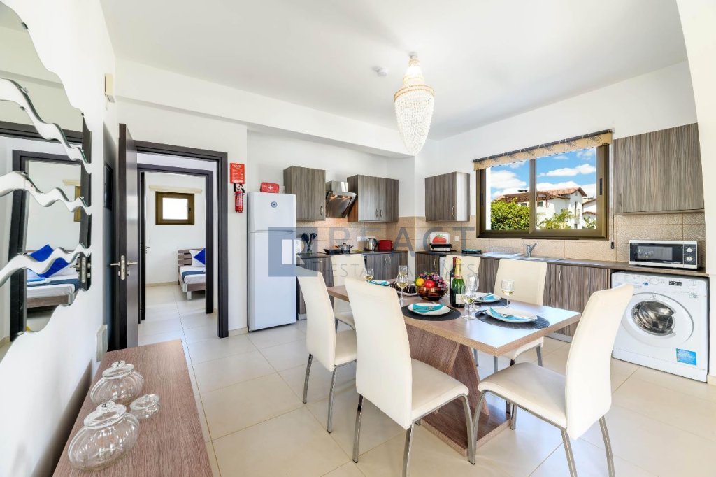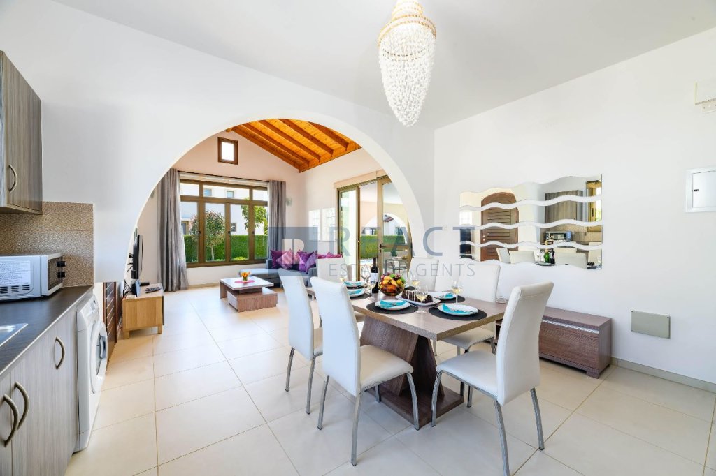 This well-maintained property is set on a 497 sqm plot, offering a 105 sqm internal living area and 21 sqm of covered verandas. It features an open-plan kitchen, 3 bedrooms, and 2 bathrooms and is sold fully furnished. Outside, the spacious garden includes a swimming pool and a barbeque area.