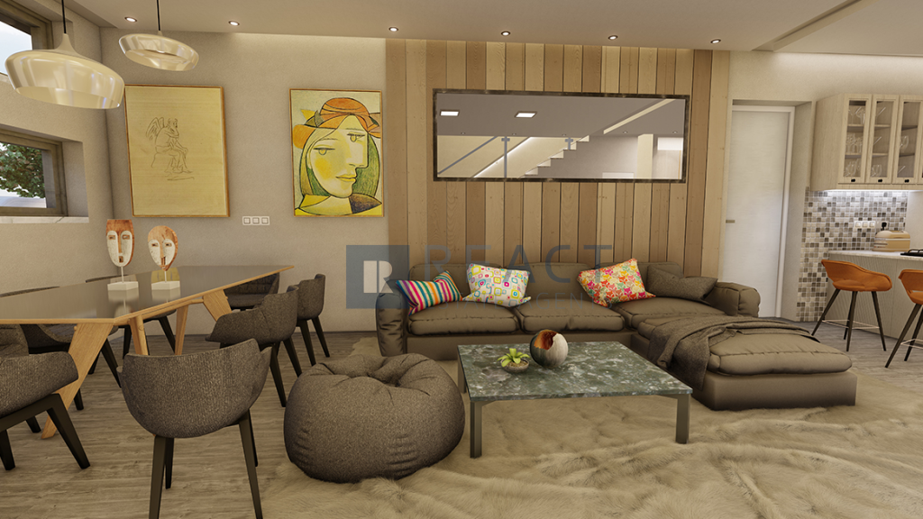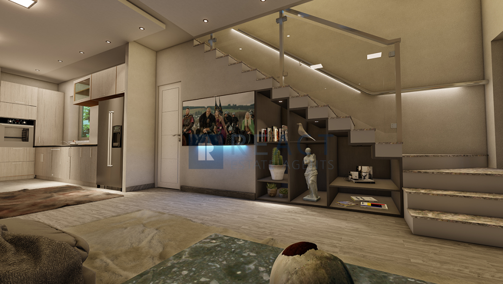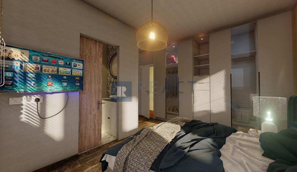 The property it's located in a plot of 175sqm and has an internal area of 144sqm. It consists of 3 bedrooms and 3 bathrooms one of which it's en-suite. The ground floor compromises of an open plan kitchen with a well size living room/dinning room.