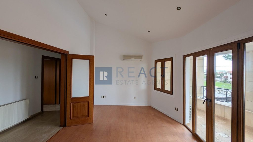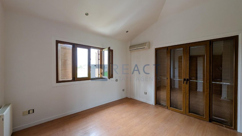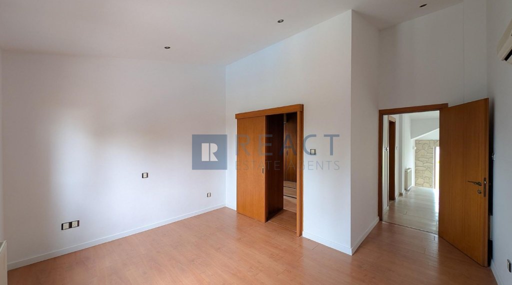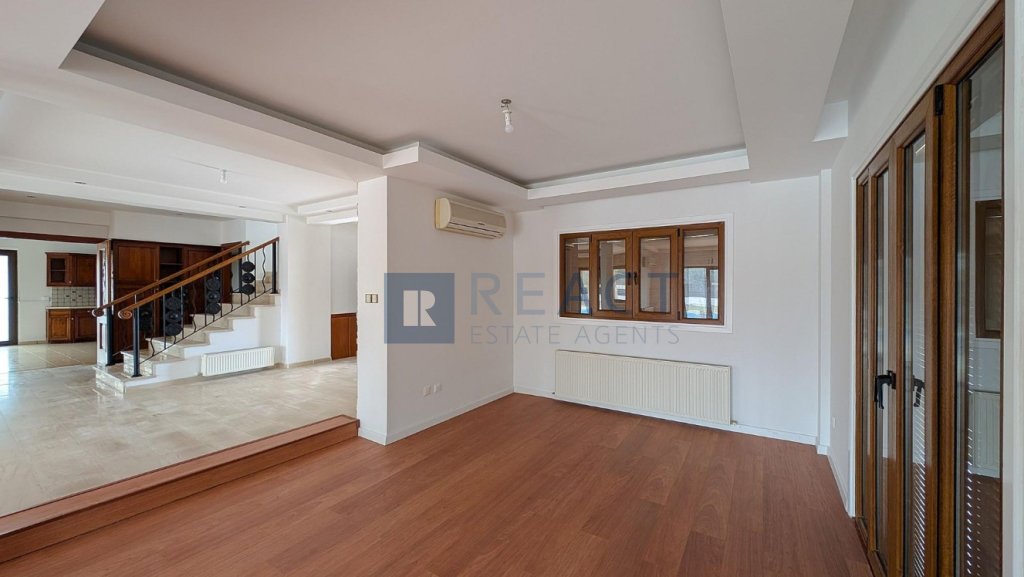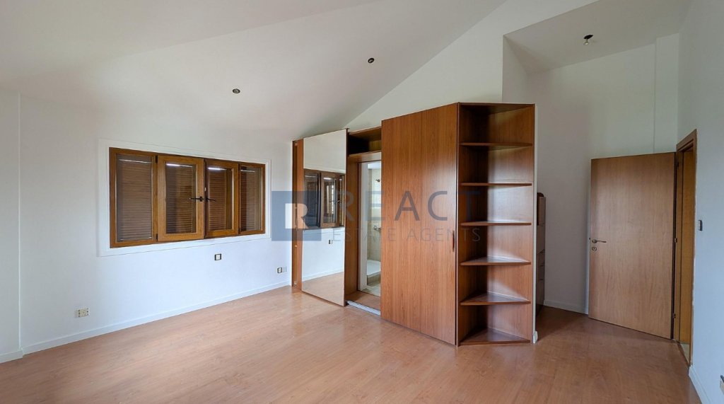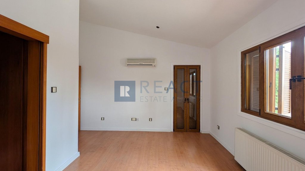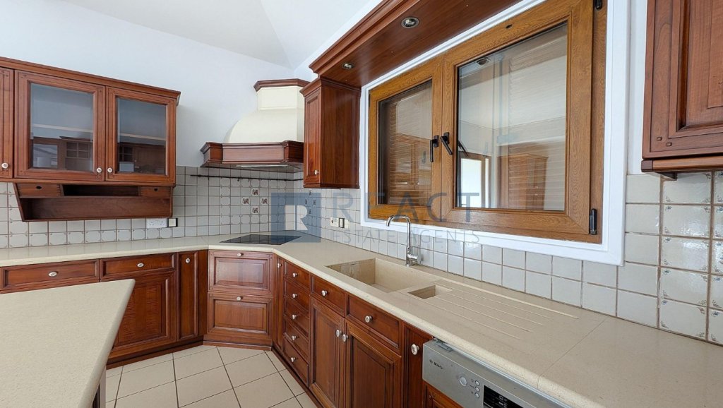 The property has an internal area of 298sqm , 89sqm covered verandas built in a plot of 1144sqm. The ground floor consists of an open-plan entrance hall that leads to a spacious dining/living areas, a separate sitting room, a guest W/C, and a modern kitchen-sitting room. The first floor includes a private office, a laundry room, and three spacious bedrooms. The master bedroom features an en-suite bathroom and a walk-in closet, while a second bedroom also enjoys its own en-suite shower.
