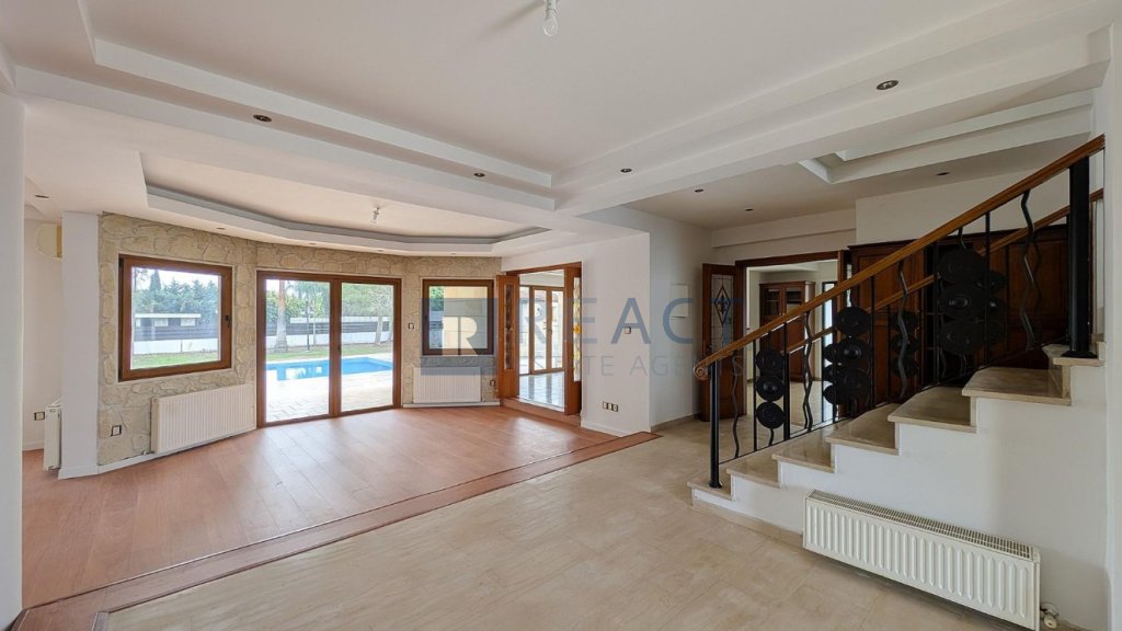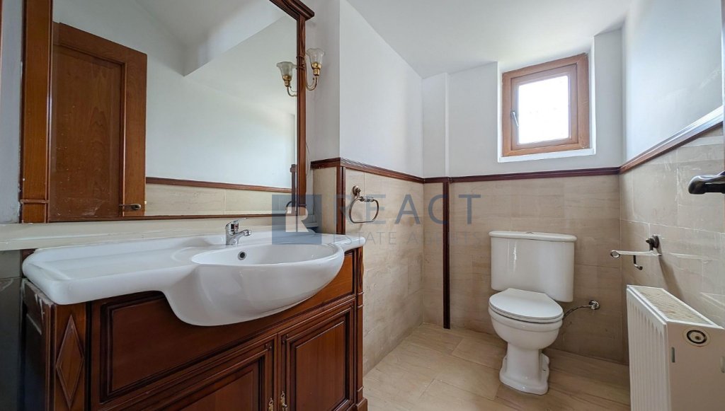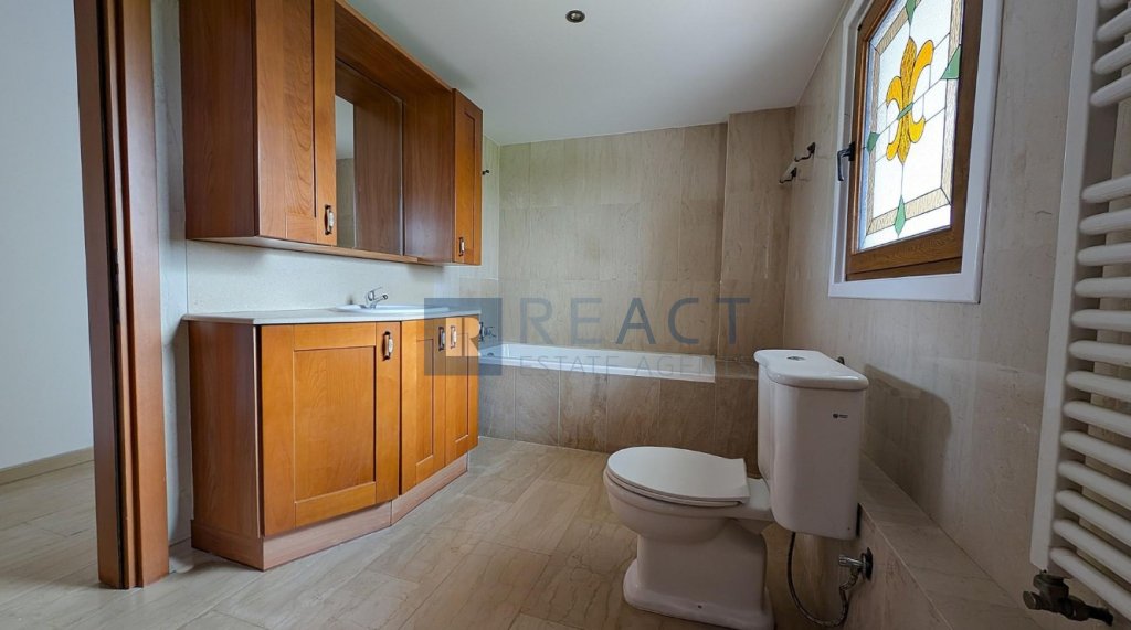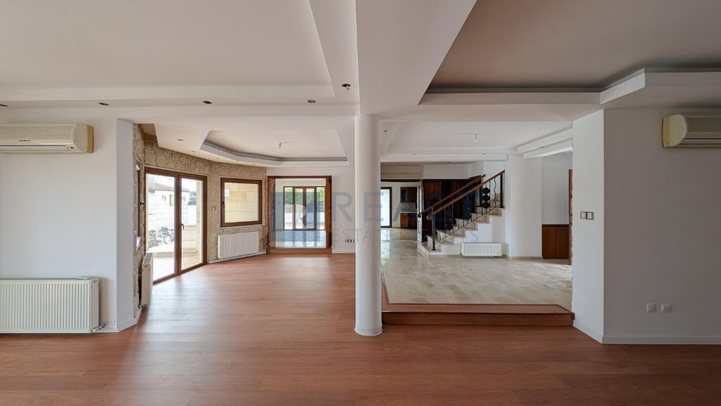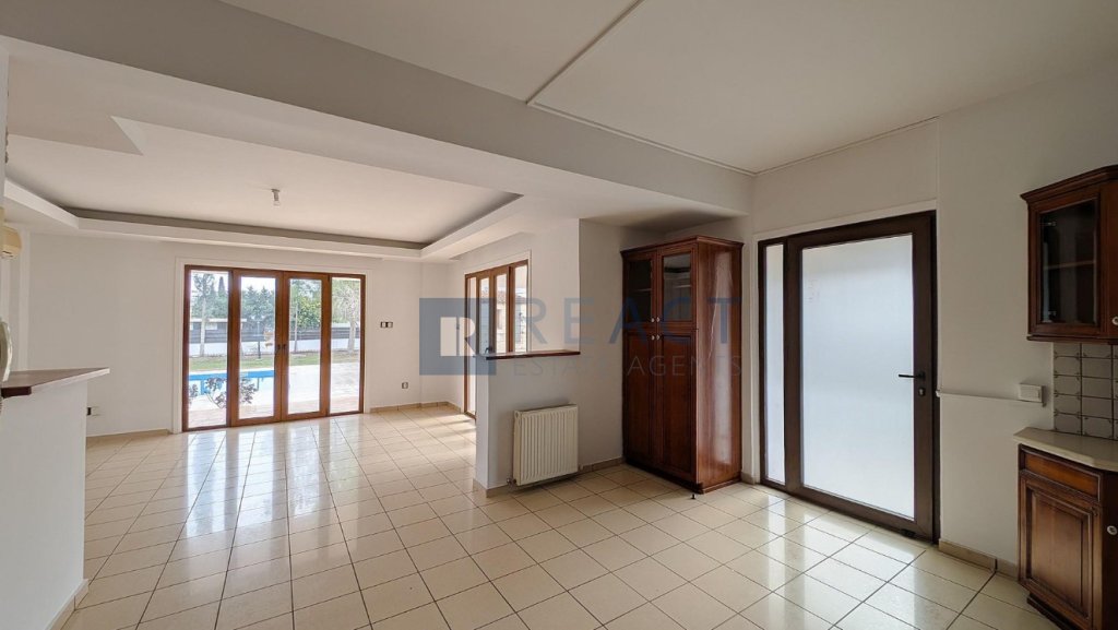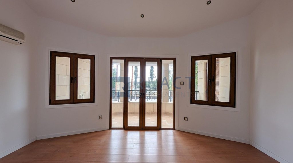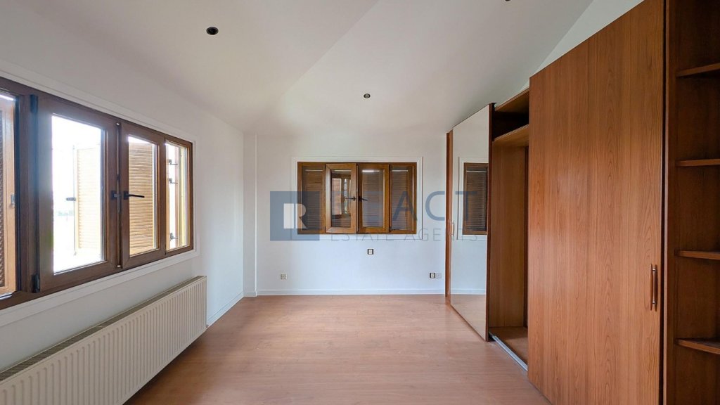 The property has an internal area of 298sqm , 89sqm covered verandas built in a plot of 1144sqm. The ground floor consists of an open-plan entrance hall that leads to a spacious dining/living areas, a separate sitting room, a guest W/C, and a modern kitchen-sitting room. The first floor includes a private office, a laundry room, and three spacious bedrooms. The master bedroom features an en-suite bathroom and a walk-in closet, while a second bedroom also enjoys its own en-suite shower.