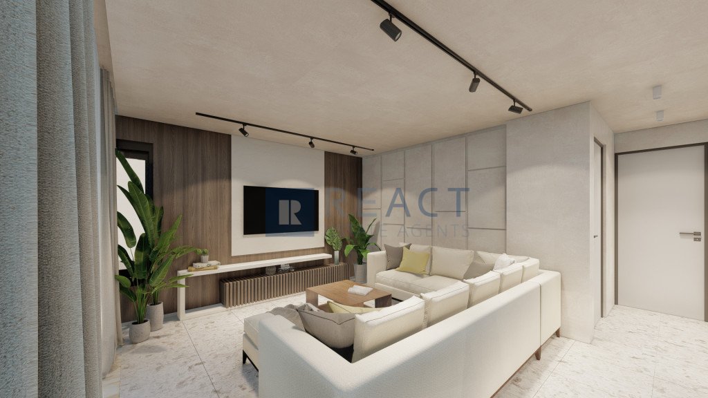 The property is located on the top floor of a 3-storey residential building. it has an internal area of 100sqm, 28sqm covered verandas and 37sqm roof garden. It consists of 3 bedrooms one of which is enuite and a total of 2 bathrooms, an open plan kitchen with dinning/living room area with a spacious veranda. The property benefits from a photovoltaic system.