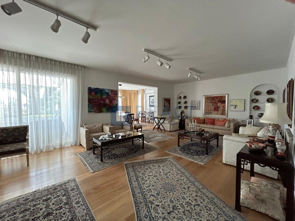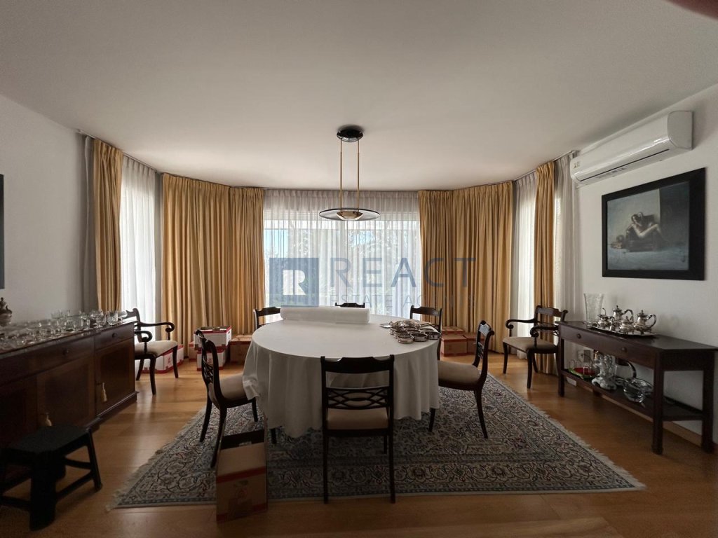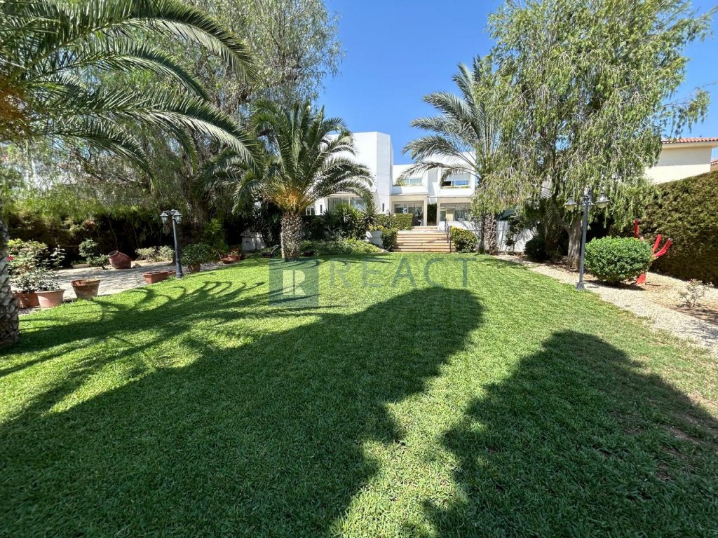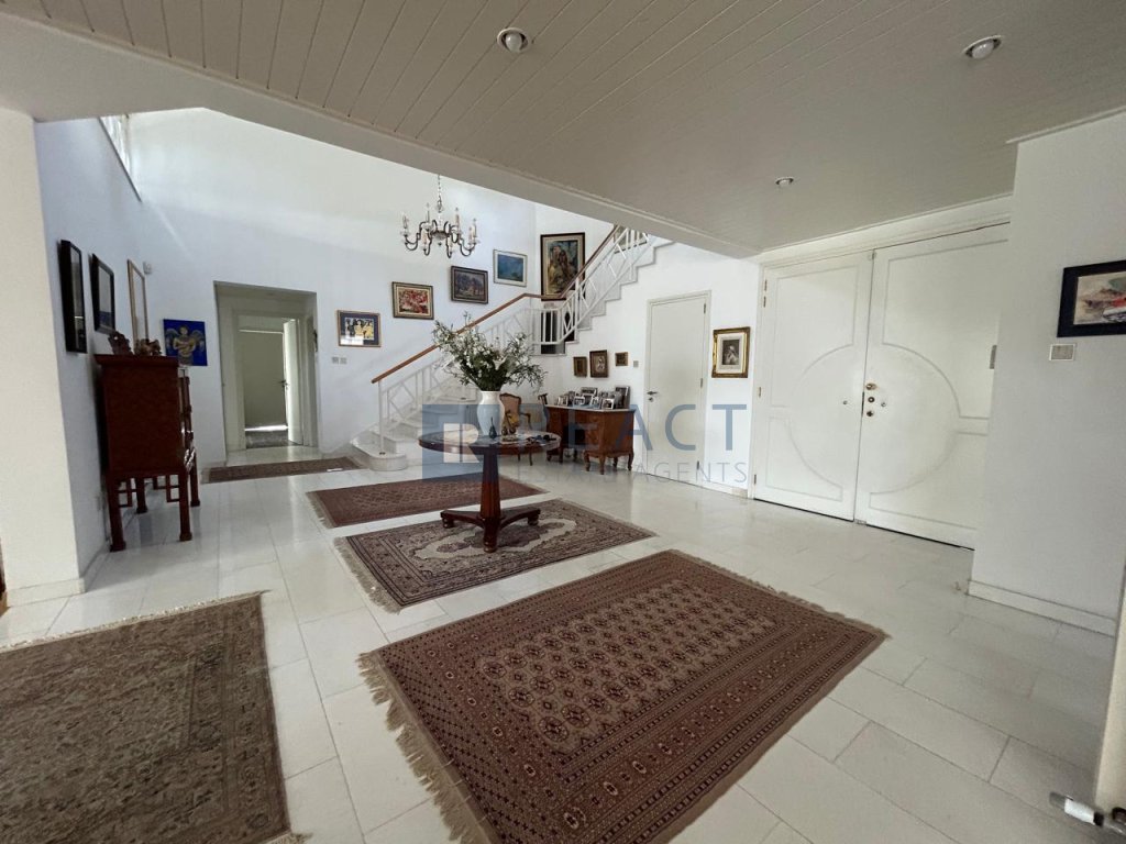 The property boasts an internal area of 400 sqm set within a plot of 1044 sqm. The ground floor features a functional office, a cozy everyday room with a fireplace, and a large sitting room that opens to the dining room, all overlooking a mature garden. The first floor includes three spacious bedrooms, with the master bedroom being en-suite and equipped with a walk-in closet. The villa benefits from the mature and well-maintained garden and a maids room with en-suite.