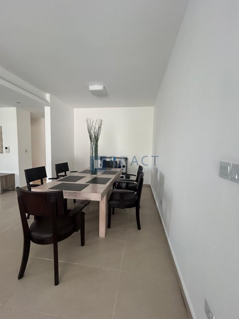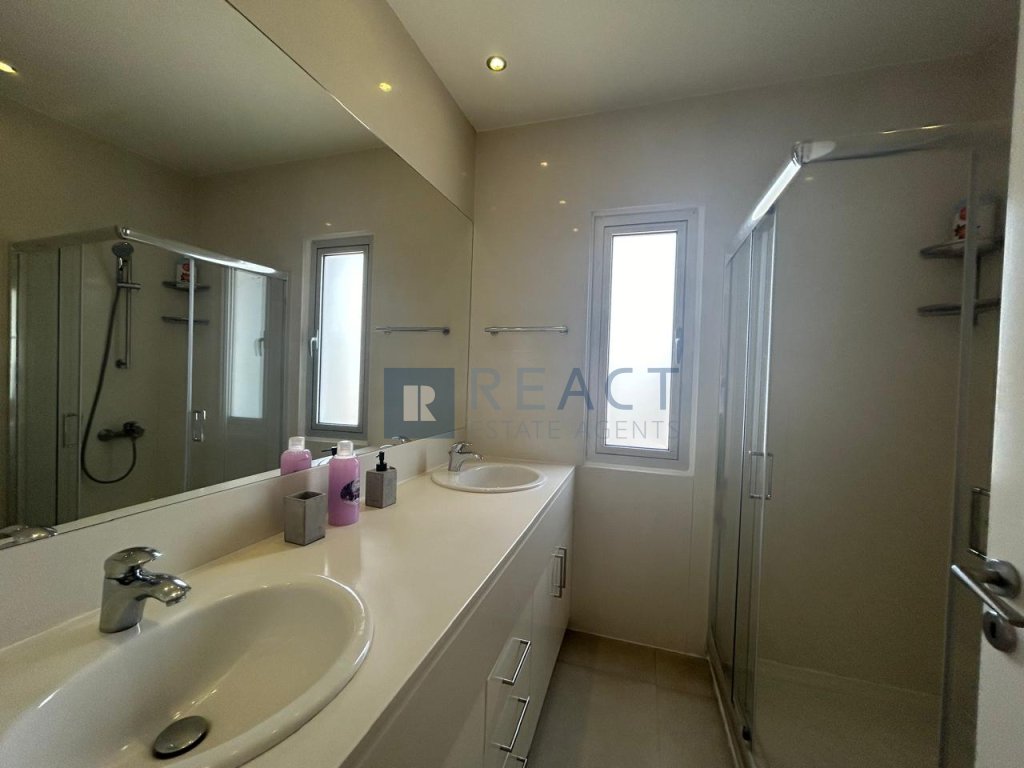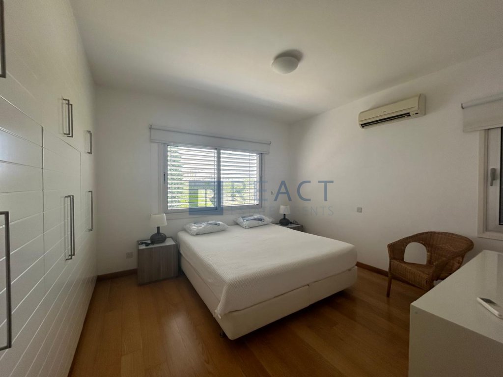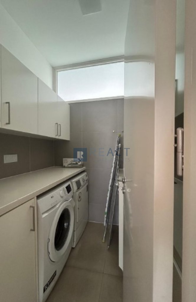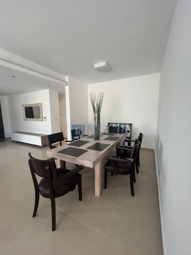 The property is a spacious apartment located on the first floor of a small residential building, featuring an internal area of 180 square meters and 40 square meters of covered verandas. It consists of three bedrooms, all of which are en-suite, along with a guest toilet. The well-sized living and dining area benefits from a fireplace. The apartment is fully furnished and ready to move in. Additionally, it includes three covered parking spaces, a storage room, and an extra room on the ground floor.