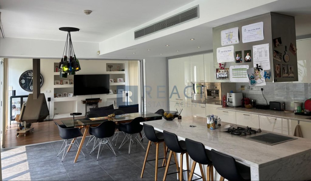 The property has an internal area of 420sqm built in a plot of 890sqm. The ground floor consists of an open-plan living and dining area, a separate kitchen, and a guest WC. The first floor comprises of four bedrooms one of which is en-suite and a shared bathroom.