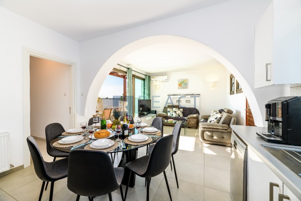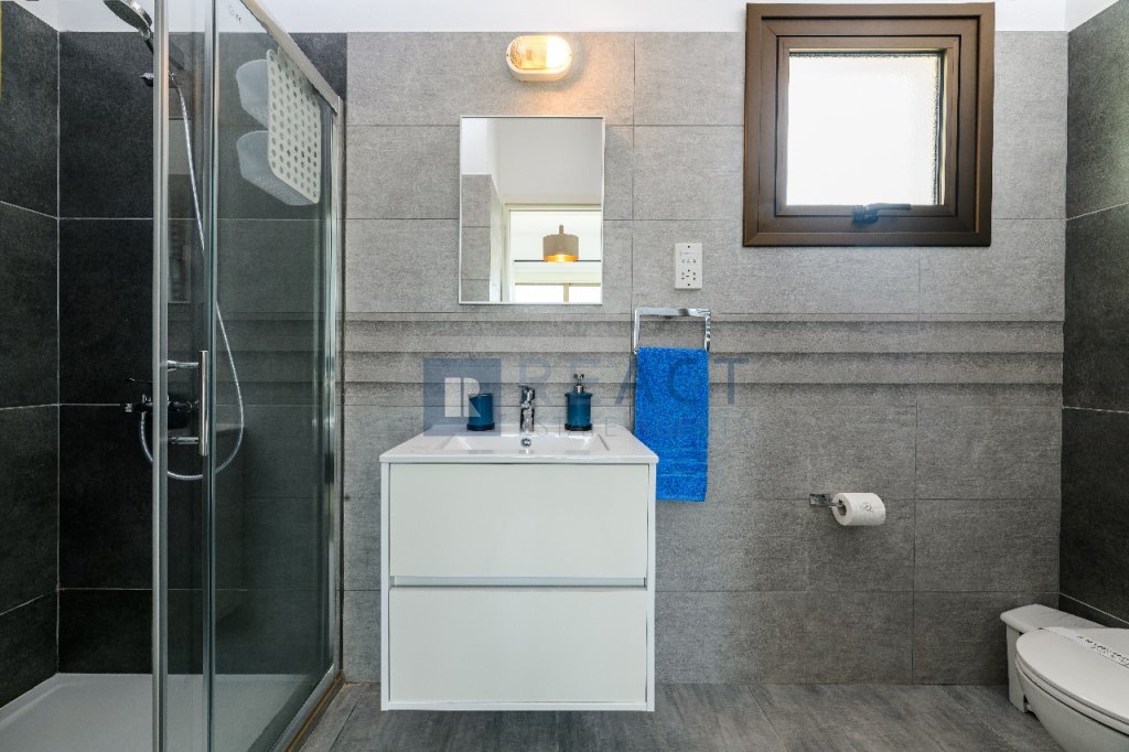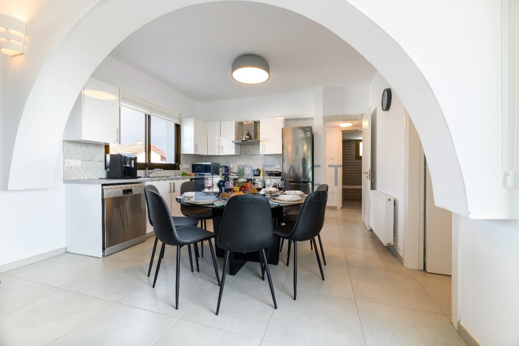 A beautiful property with a total internal area of 135sqm, situated on a 630sqm plot, and featuring a 45sqm rooftop. This spacious home includes 4 en suite bedrooms, an open plan kitchen, living and dining area, and a guest toilet on the ground floor. The living space is complemented by a cozy fireplace. Outside, you'll find a swimming pool with a barbeque area, perfect for entertaining. The property also boasts a 7KW photovoltaic system and a smart heating system for energy efficiency. It is being sold fully furnished.