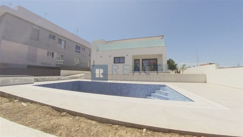 Luxury five bedroom house with a swimming pool. It is located in a quiet residential neighborhood in Latsia, in close proximity to all amenities and very fast access to the highway.
