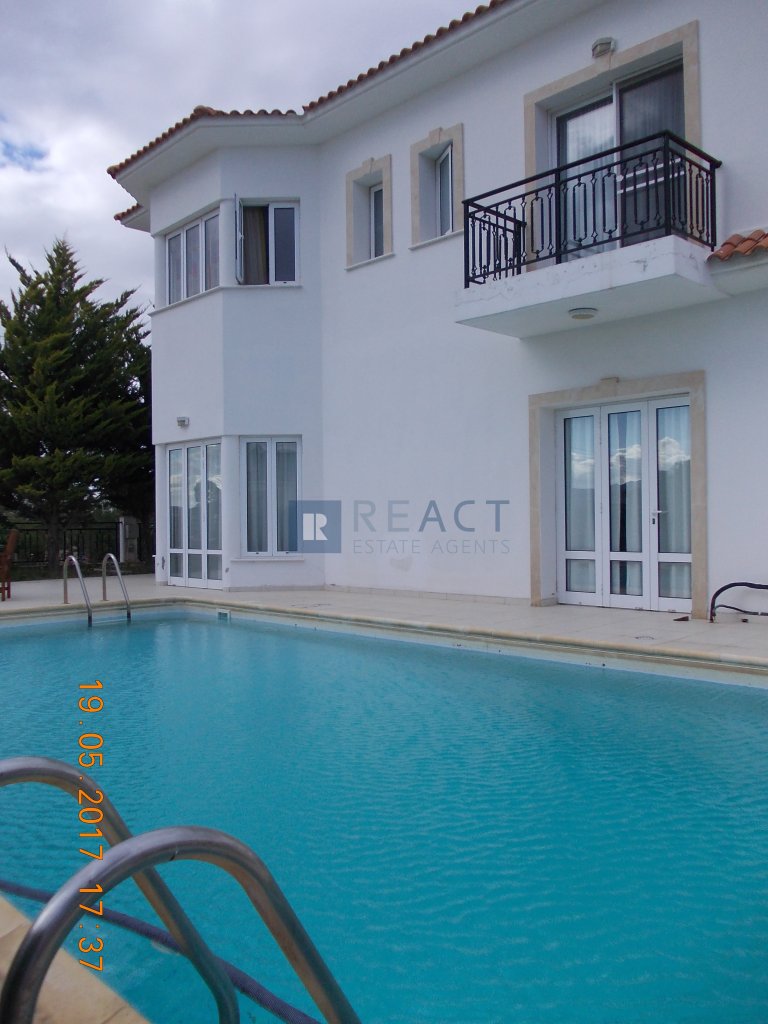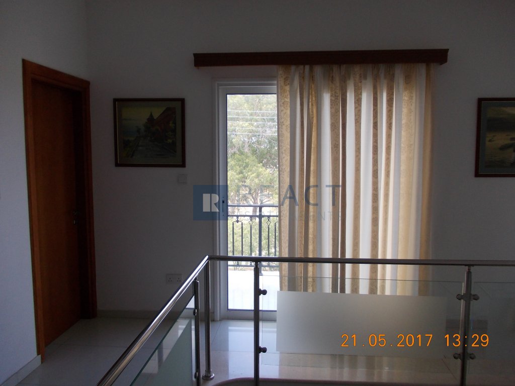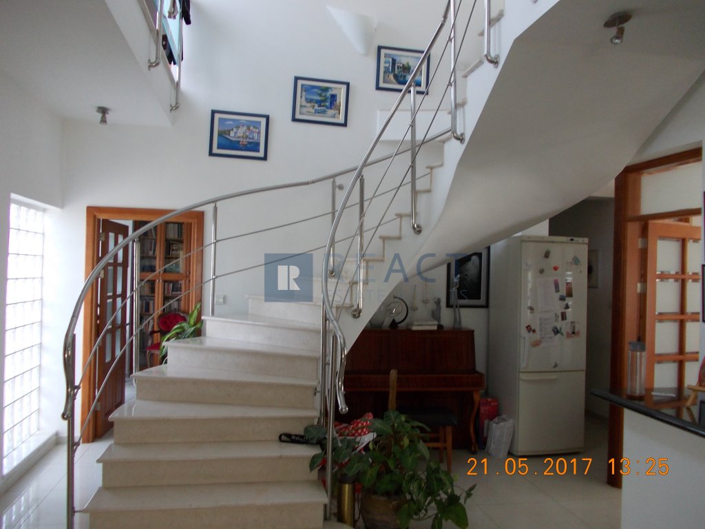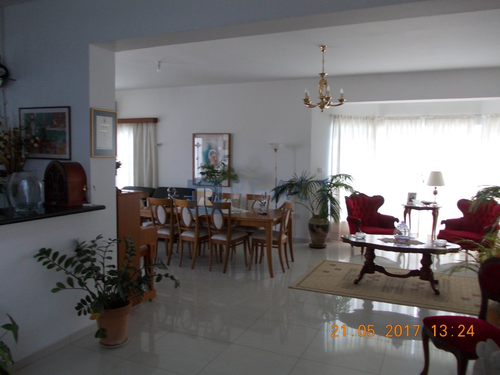 The building is 2-storey, built with 25cm wide brick (instead of the usual 20cm), offering increased thermal and sound insulation. Upstairs there are 4 bedrooms with en suite bath or shower and toilet. On the ground floor there is a hall with bar, living room, dining room, office (which becomes a bedroom without any conversion costs), living room, kitchen and utility room, guest toilet, toilet with shower for the pool, pool 50sqm, double covered garage, paved yard, and garden. All the built-in furniture of the house (cabinets, benches, etc.) has a solid beech facade while the kitchen, bathroom and sink counters as well as the bar are made of granite. The entrance terrace and the staircase that connects the 2 floors are made of marble while the rest of the floors are covered with high quality ceramics.
