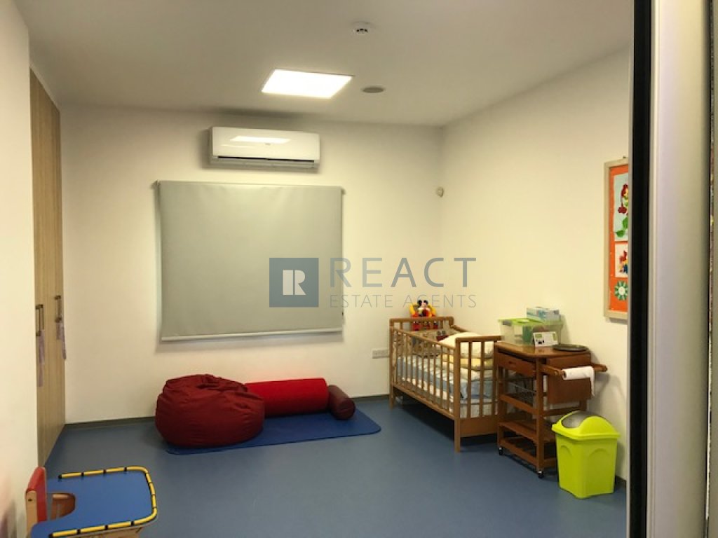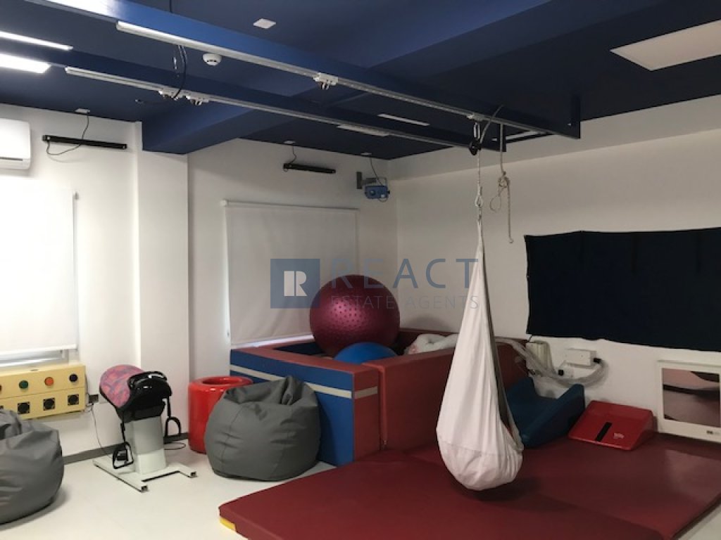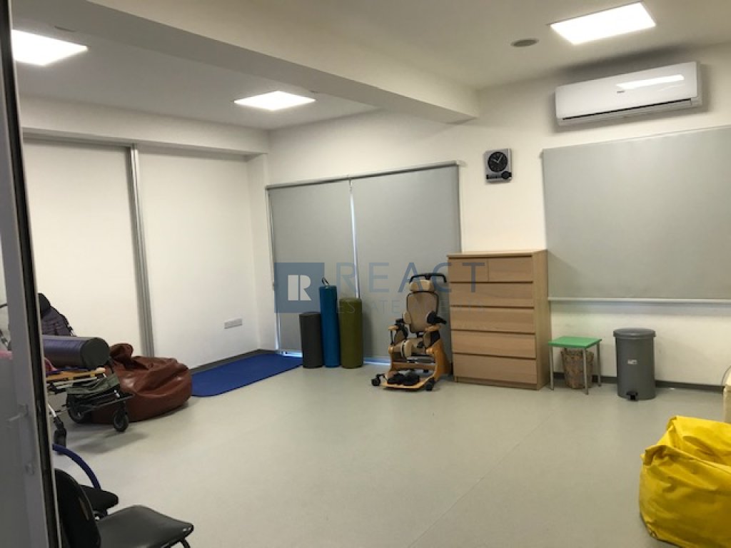 Office space for rent in Strovolos. The 287 square meters space is a perfect setup for a clinic, physiotherapy centre or any type of medical centre. The space is separated in ten rooms/office spaces, four bathrooms and a kitchen. The space includes “Split Unit” inverter cooling systems, a security alarm system and four parking spots.