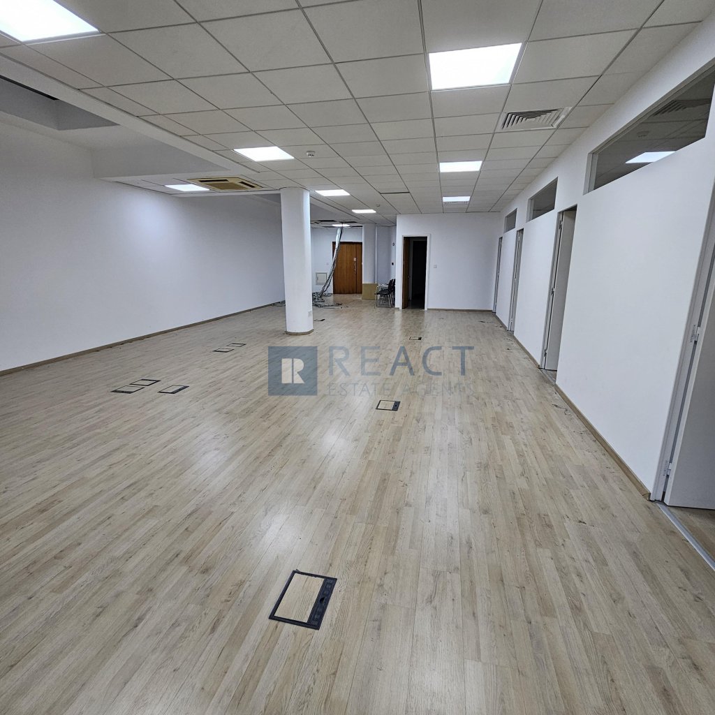 On the 1st floor of a 3-storey building, it consists of 6 spacious office rooms, kitchenette, two w/c and parking spaces in the basement.
