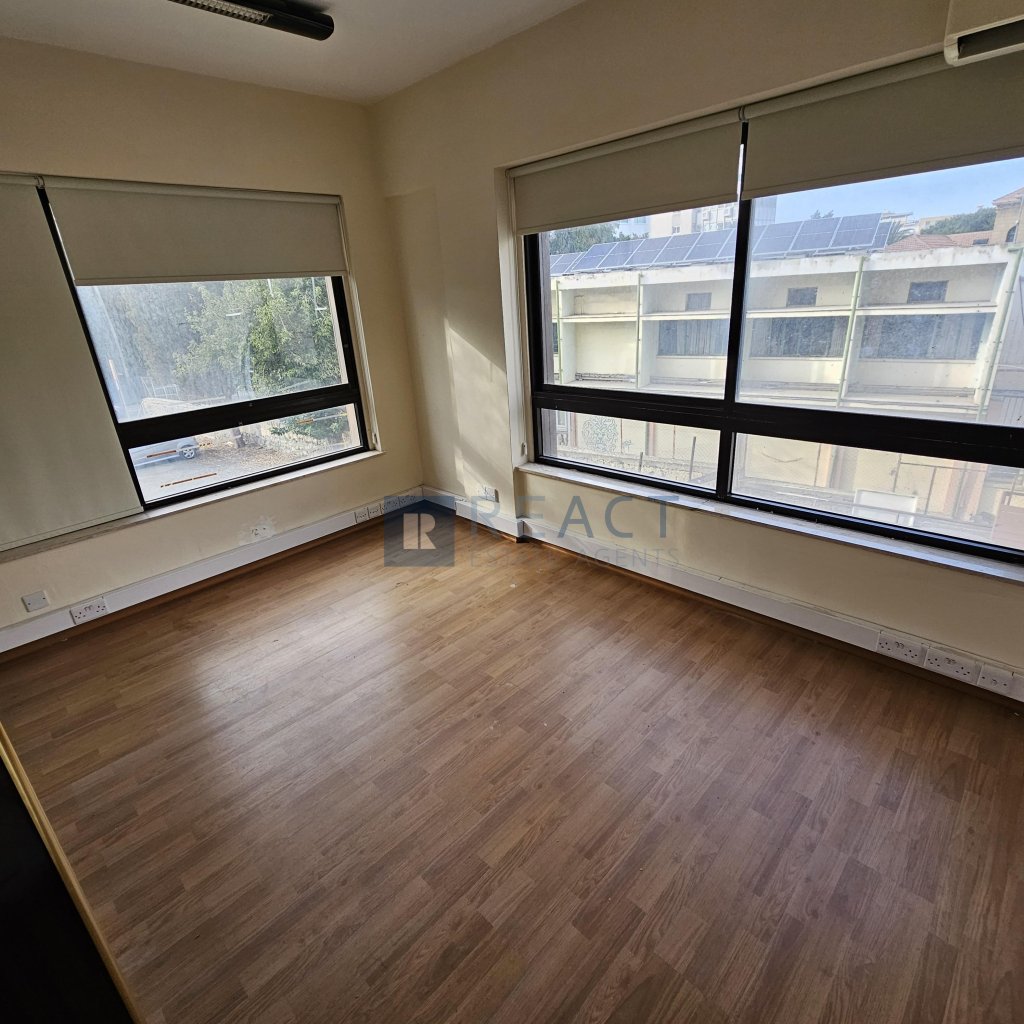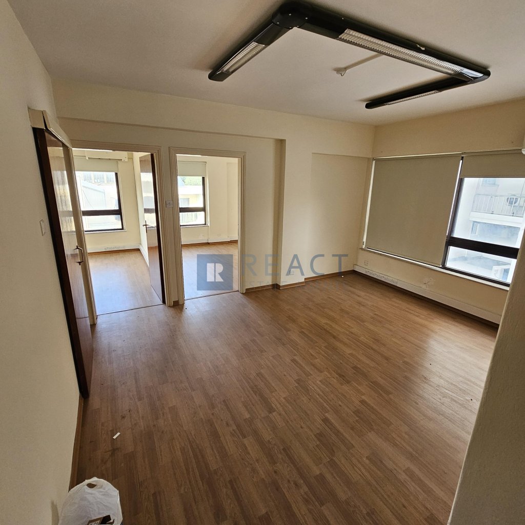 Central Location in the heart of Nicosia. Located in Stassandrou street, the office is next to many amenities. It is 55m2, consists of 2 offices space, one spacious reception area in the middle entrance, kitchen and toilet.