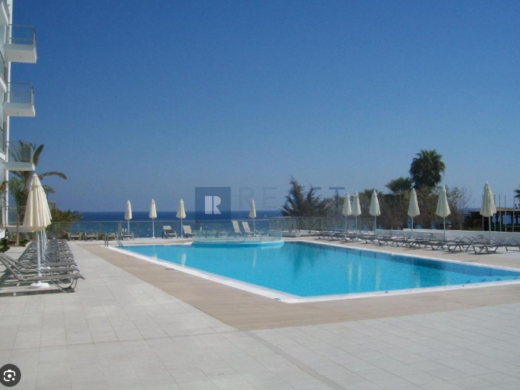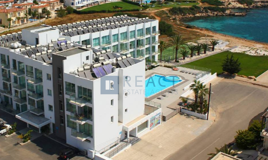 The apartment has an internal area of 44sqm and a covered verand. It comprises of an open plan living/dining room and kitchen, one bedroom, a bathroom It features ceramic flooring and split units. It also enjoys the use of an uncovered parking space. The building complex consists of two communal swimming pools, parking space area, tennis court and a cafeteria.