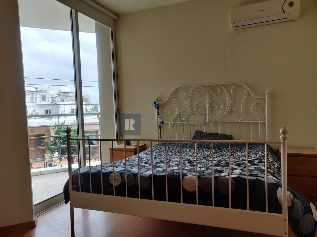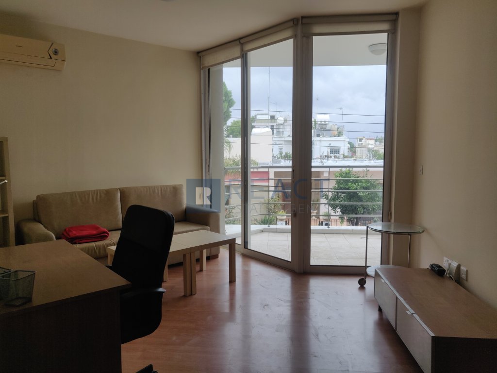 Cozy one bedroom apartment on a three storey building in a central location in Engomi. The apartment is furnished including a double bed, has an equipped kitchen and includes A/C split units and Underfloor Heating. The apartment also has a spacious north facing balcony.
