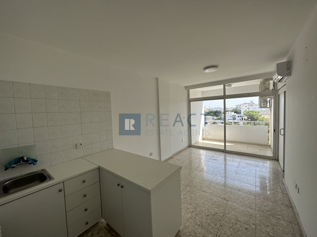 It consists of a living room - kitchen in an open plan space, a front facing balcony, a bathroom and one bedroom. The apartment is move-in ready. Partly renovated recently, the apartment includes aluminium window frames, a fridge, kitchen hob and two new A/C split units.