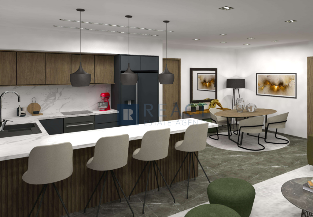 Three bedroom luxury apartment currently under construction. The building is being constructed with high quality material and thermal insulation. It is situated in a central location in a quiet residential area in Strovolos, with an easy and fast access to the city center. The apartment features an open space kitchen, living room and dining area with excellent finishes. Three bedrooms, one of which being ensuite, 2 bathrooms and a large covered veranda. It also includes underfloor heating, covered parking and a storage room.