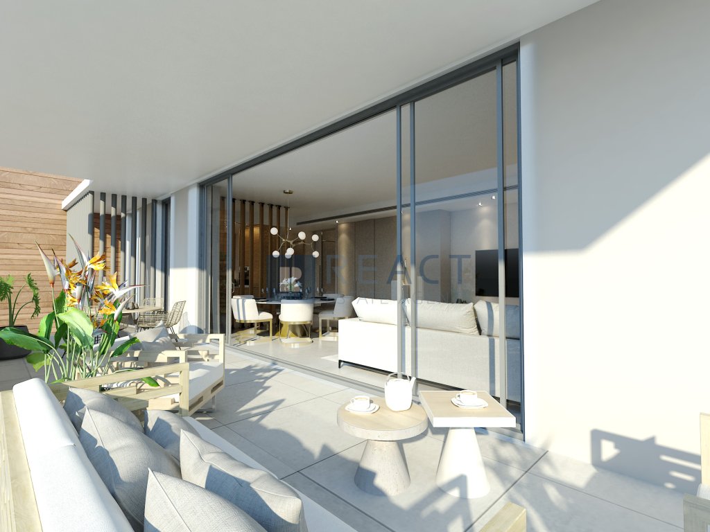 This opulent residence offers a spacious and fluid design, featuring an expansive open-plan living area, seamlessly integrated with a modern open-plan kitchen. The apartment comprises three bedrooms, two of which are ensuite, while the master suite boasts a walk-in closet for your convenience. Three well-appointed bathrooms, each with its own unique character, ensure both style and functionality. Step onto one of the three balconies for a refreshing breath of fresh air, where the master bedroom enjoys access to a spacious front-facing balcony, while the other two bedrooms have their private balconies. Electric shutters grace all the bedrooms, allowing you to create your ideal ambiance effortlessly.
