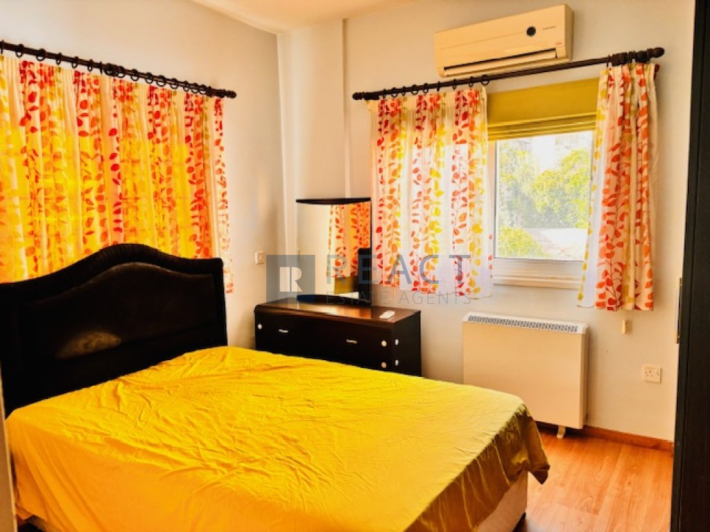 Three bedroom apartment, located in Nicosia, Agioi Omologites. The apartment is in a central location, with easy access to the city center. The apartment has 114sqm total area and it consists of three bedrooms, one bathroom, an open plan kitchen and living room and a balcony. It is in excellent condition and includes a/c units, heating units, electrical appliances, water pressure system, solar water heating, storage space and covered parking space.