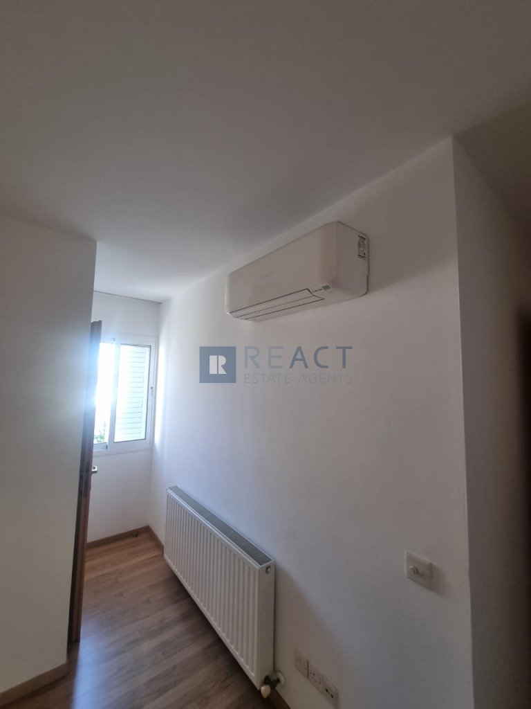 Spacious three-bedroom apartment for rent in Stavrou area, Strovolos. Ideally located within walking distance to a school, supermarket, pharmacy, and a hair salon, this property offers both convenience and comfort. The apartment is fully equipped with air conditioning in all rooms, a security alarm system, a water filtration system, and includes all essential electrical appliances, including a dryer. It also features a covered veranda, perfect for relaxing. Additional highlights include insect screens on all windows, a covered parking space, and a private storage room. This is an excellent opportunity for those seeking a well-maintained home in a prime location.