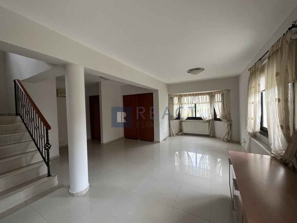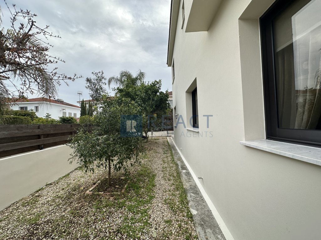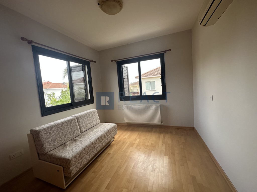 The property is a two-storey, three-bedroom house in a beautiful and quiet residential area in Makedonitissa, Engomi. The ground floor consists of an open plan living room - dining area with a guest bathroom, a separate kitchen including a kitchen-island, family dining area and a laundry room / kitchenette. The second floor consists of three bedrooms. The master bedroom is a double room (can be converted into two rooms) which includes an en-suite w/c with a shower. There is an additional family bathroom with a bathtub. The house was recently renovated partly and it is made with quality materials and finishes. The floors are covered in ceramic tiles and parquet in the bedrooms, the kitchen benchtops are covered in granite.
