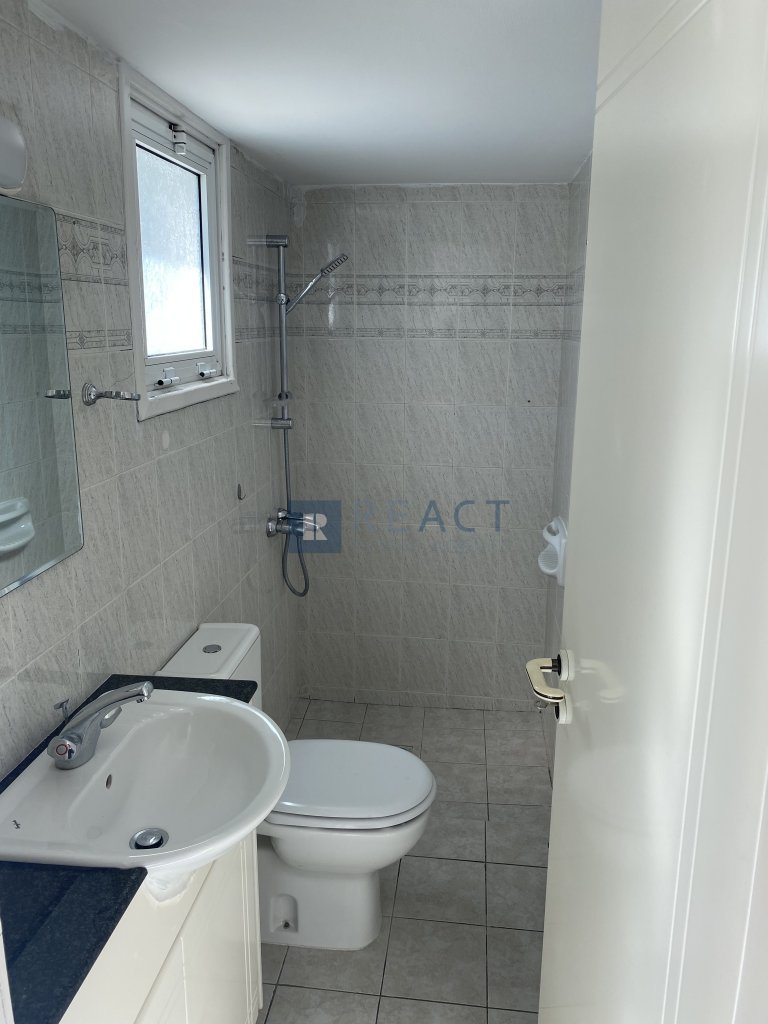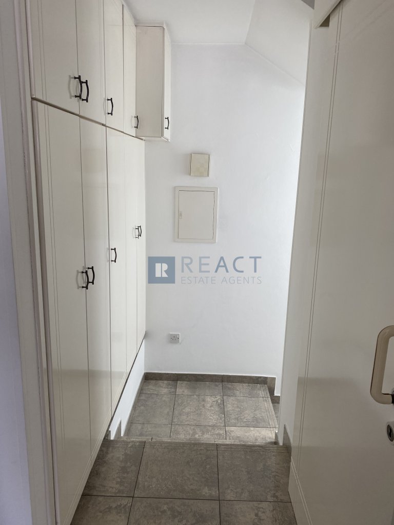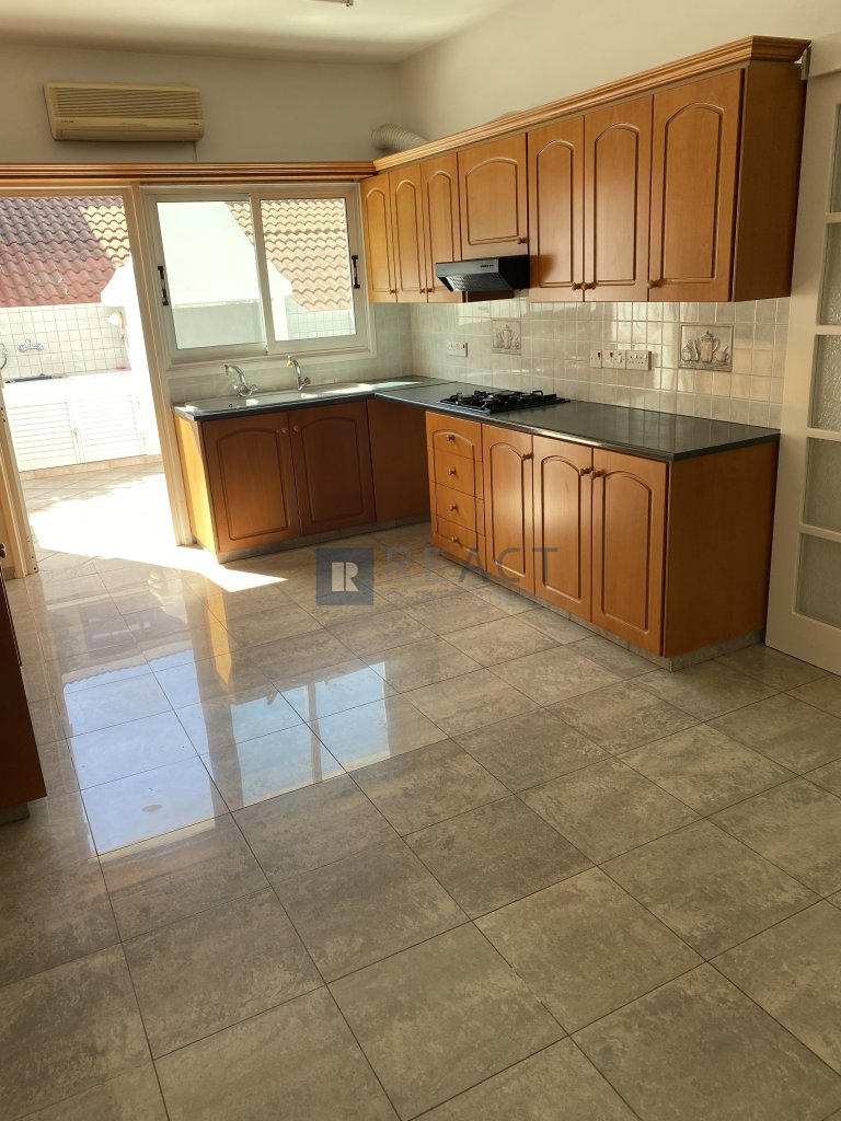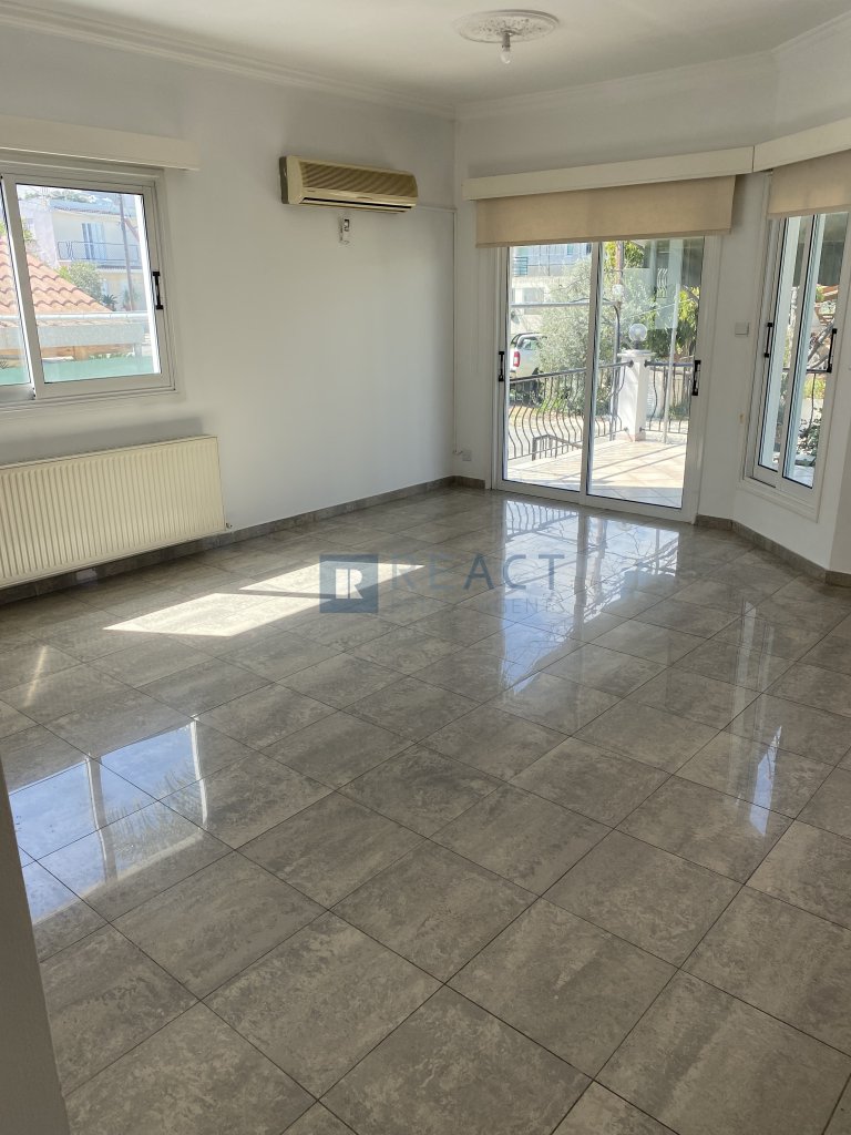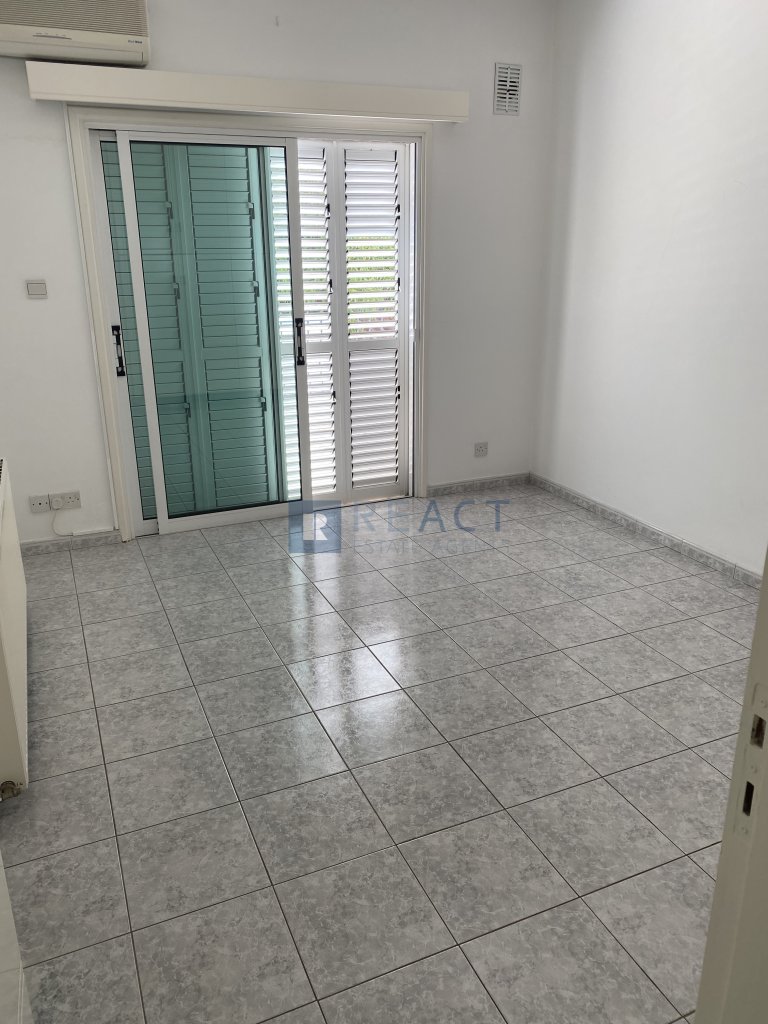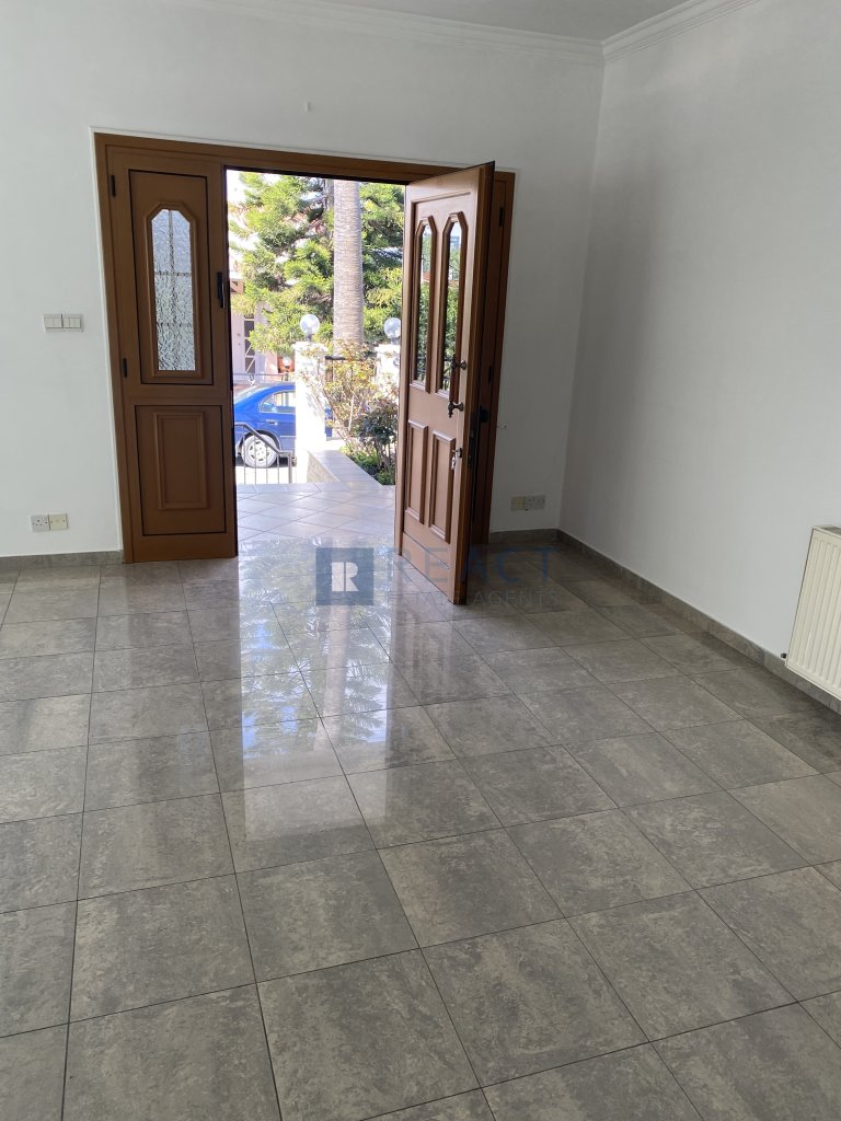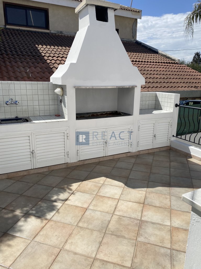 Three bedroom semi detached house in a quiet neighborhood in Makedonitissa, Engomi. It is located at a dead end, suitable for families with young children. The house consists of 3 bedrooms, 3 bathrooms 1 being ensuite, a spacious kitchen and a large living room. It also has a small veranda in the front and a large veranda in the back with barbeque facilities and a view of a tree planted field. Includes a large underground covered garage that easily fits 2 cars or more, 1 large storage room, 2 rooms one of which being ensuite that can be used as service rooms or offices.