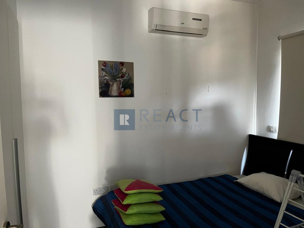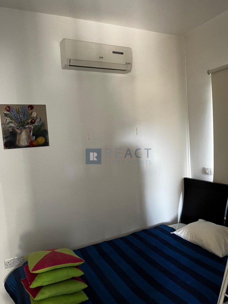The apartment consists of an open plan kitchen and living room, two bedrooms, a guest toilet with a shower, an en-suite toilet with a shower and a covered veranda. There is also a shared swimming pool for the whole complex. The apartment comes fully furnished with a/c split units.
