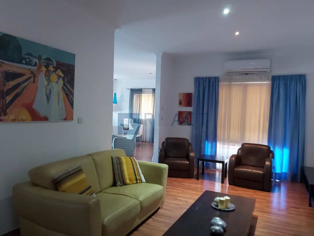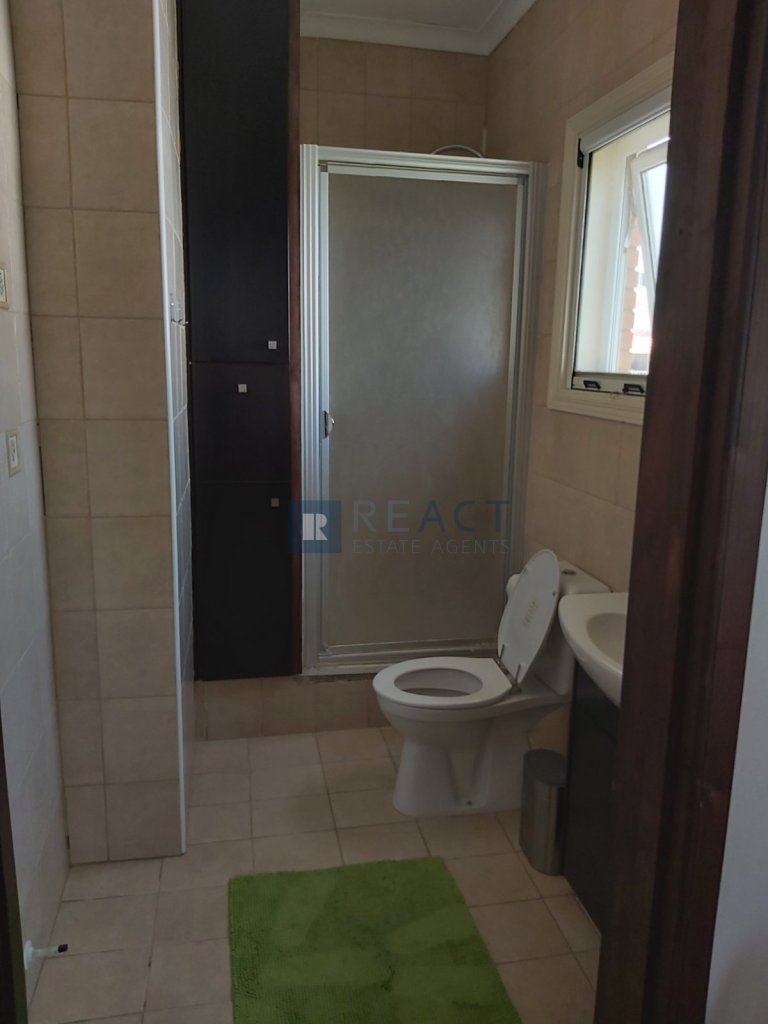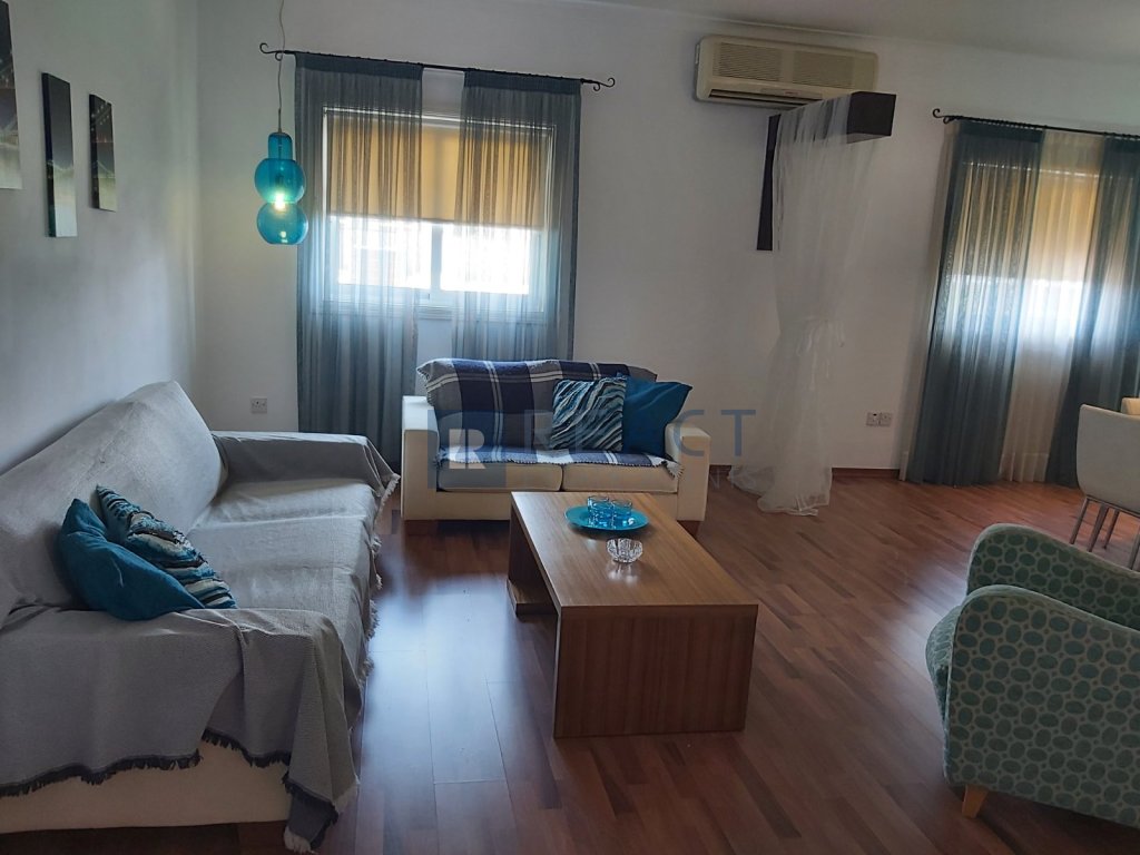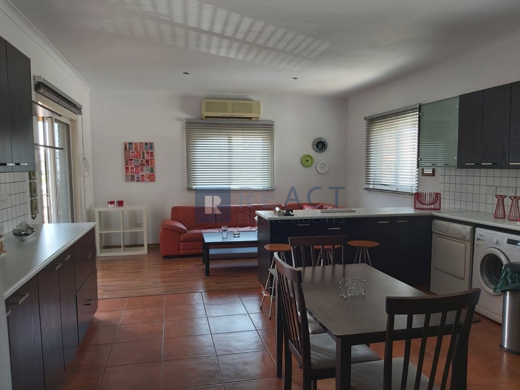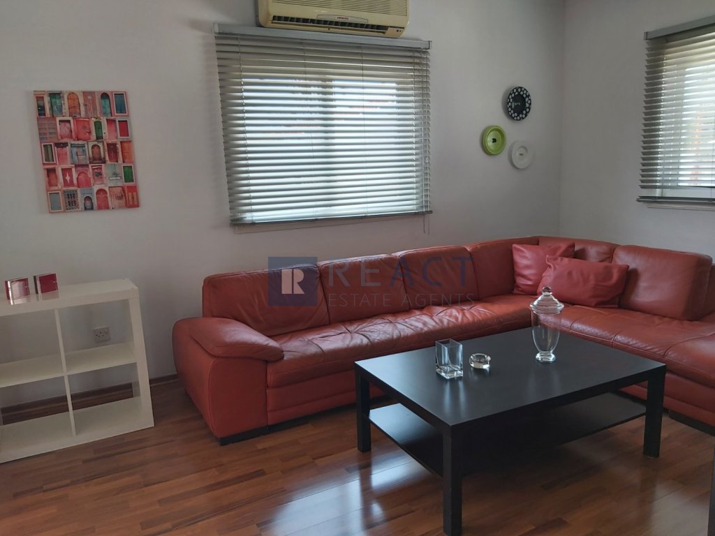 Two bedroom upper house located in Agios Dometios. The apartment has 187sqm internal area. It consists of two bedrooms, two bathrooms, an office, living room and kitchen. The apartment was built in 2006 and is well maintained. Its being offered fully furnished and with a/c units in all rooms.